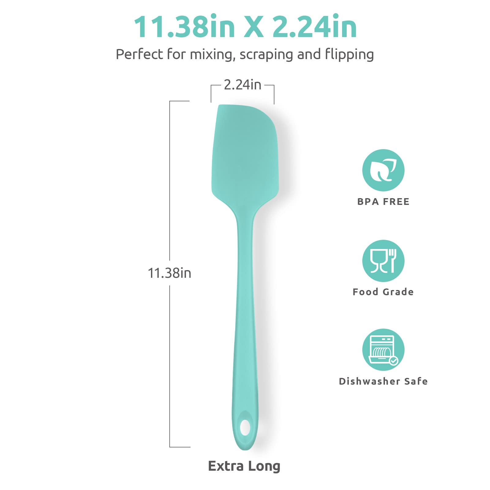 315℃ Hitzebeständiger Grosser Silikon Spatel: U-Taste Antihaft Flexibler Nahtloser Teigschaber, Backen Kochen Silikon Küchenutensilien mit Nylonkern zum Mischen Rühren Schaben (29cm, Aqua Sky)