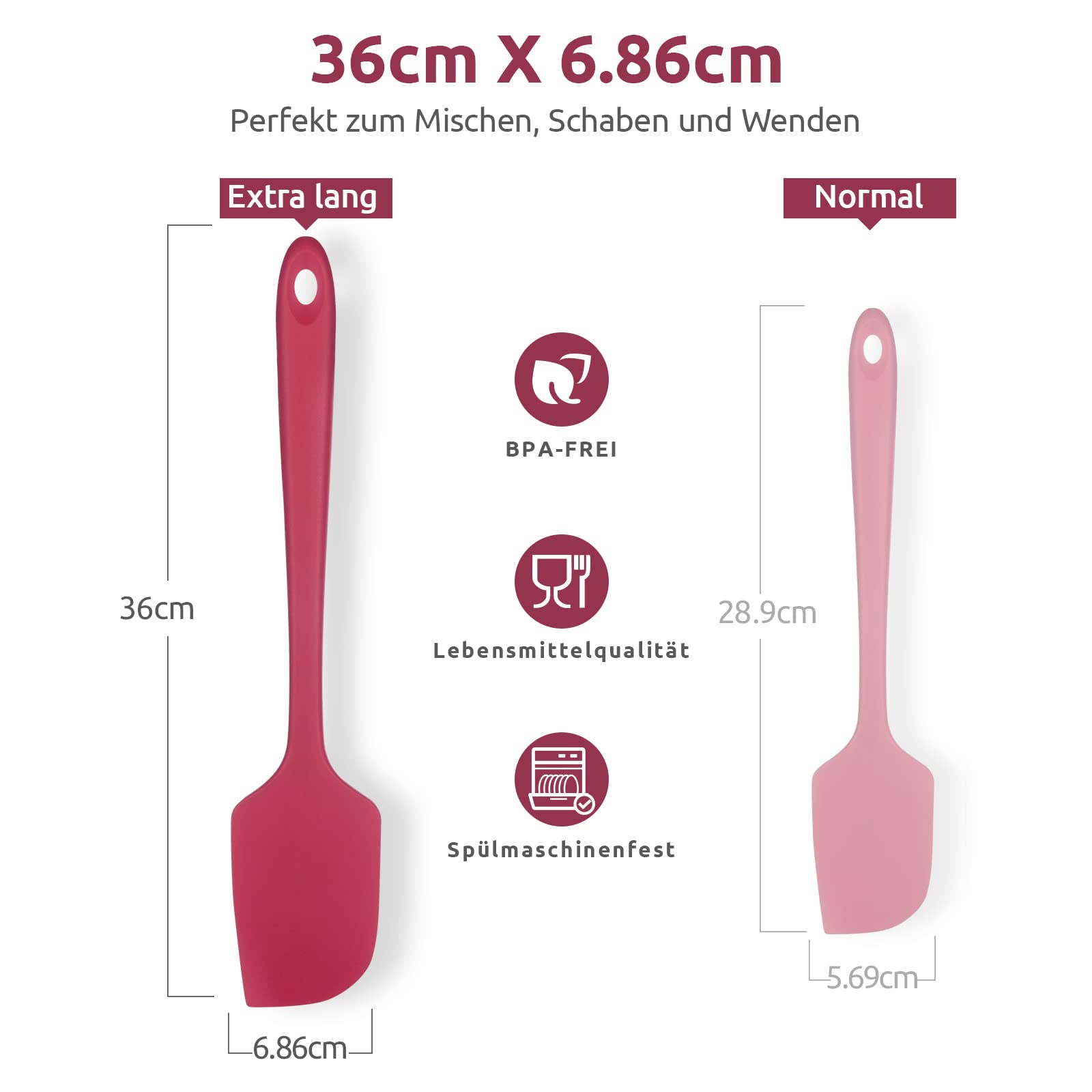 35,6cm Extra Grosser Silikon Spatel: U-Taste 315℃ Hitzebeständiger Langer Flexibler Gummispatel für Schalen & Antihaft-kochgeschirr, Nahtloses Backen Teigschaber für Mischen Schaben Kochen (Rot)