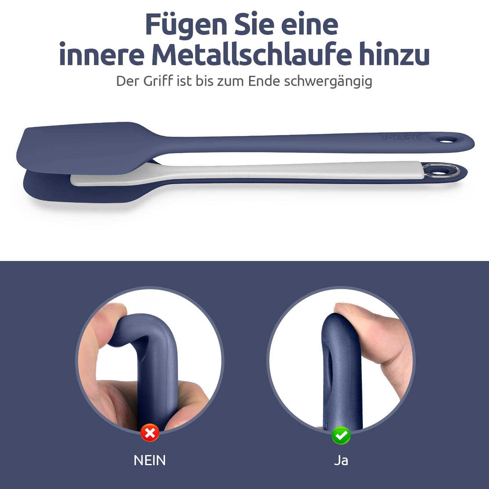 35,6cm Extra Grosser Silikon Spatel: U-Taste 315℃ Hitzebeständiger Langer Flexibler Gummispatel für Schalen & Antihaft-kochgeschirr, Nahtloses Backen Teigschaber für Mischen Schaben Kochen (Nachtblau)