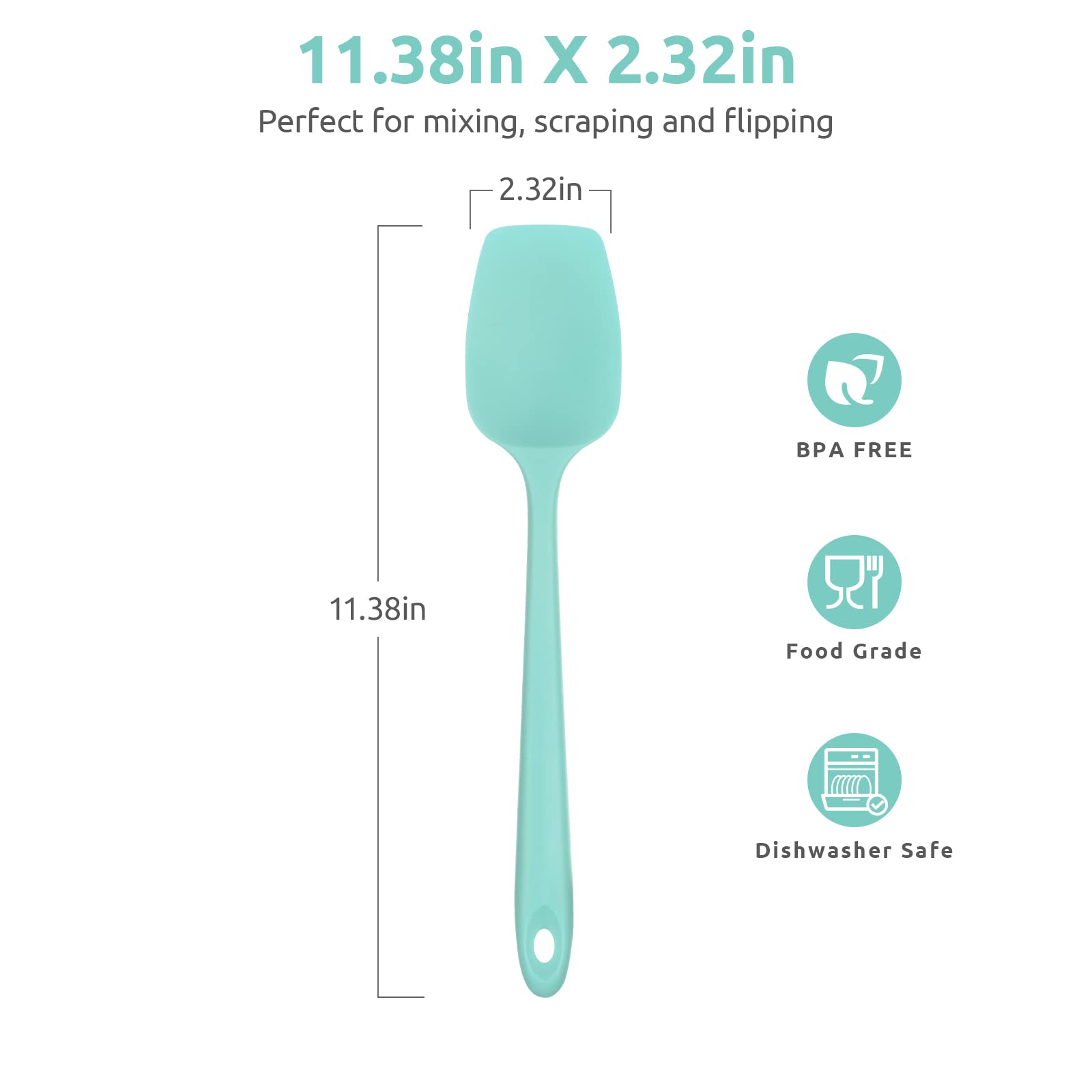 315℃ Hochhitzebeständiger Silikon Löffel Spatel: U-Taste Flexibler Nahtloser Gummispatel, Backen Kochen Silikon Teigschaber für Antihaftbeschichtetes Kochgeschirr Mischen Schaben (29cm, Aqua Sky)
