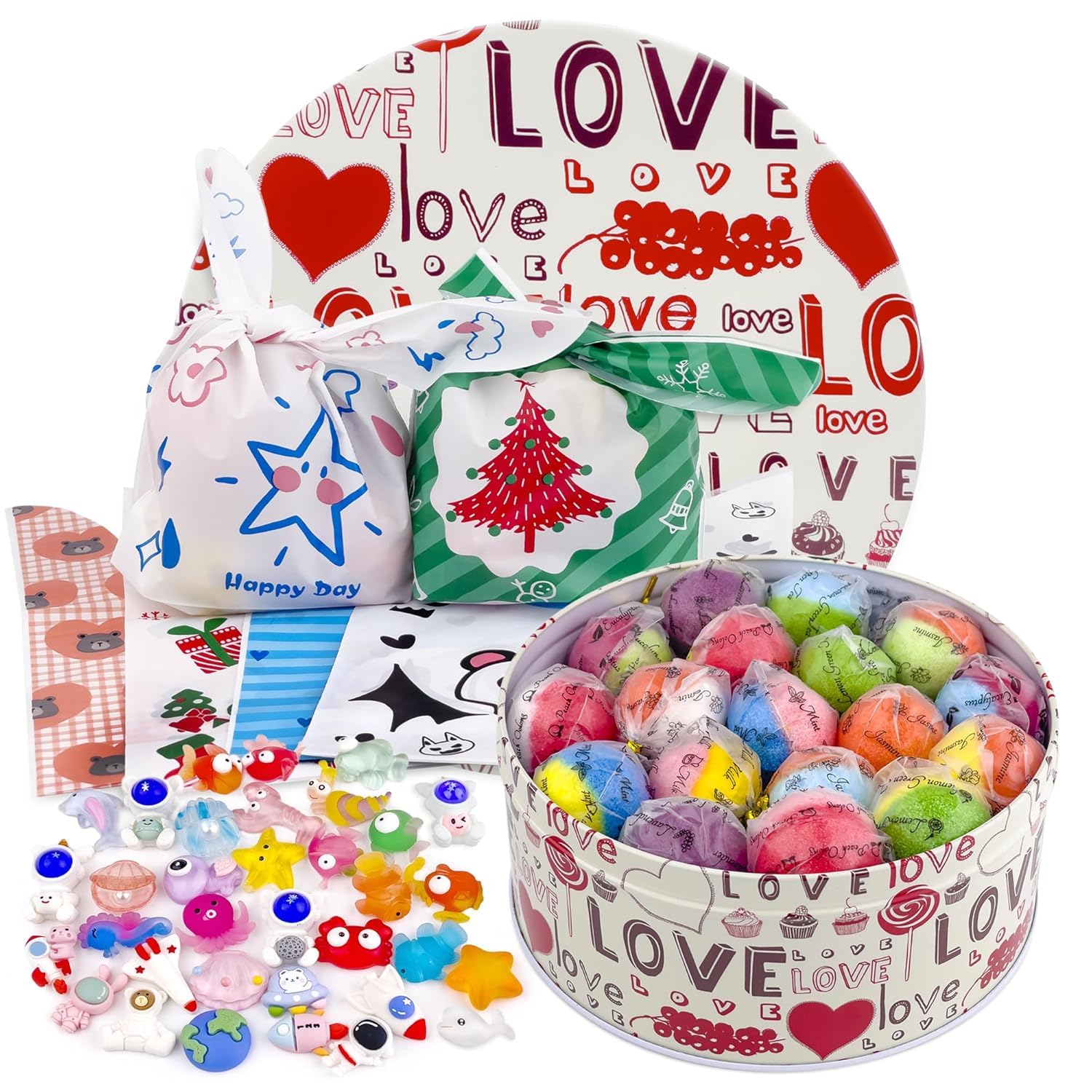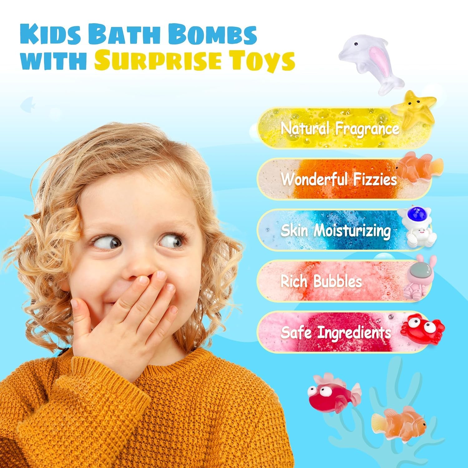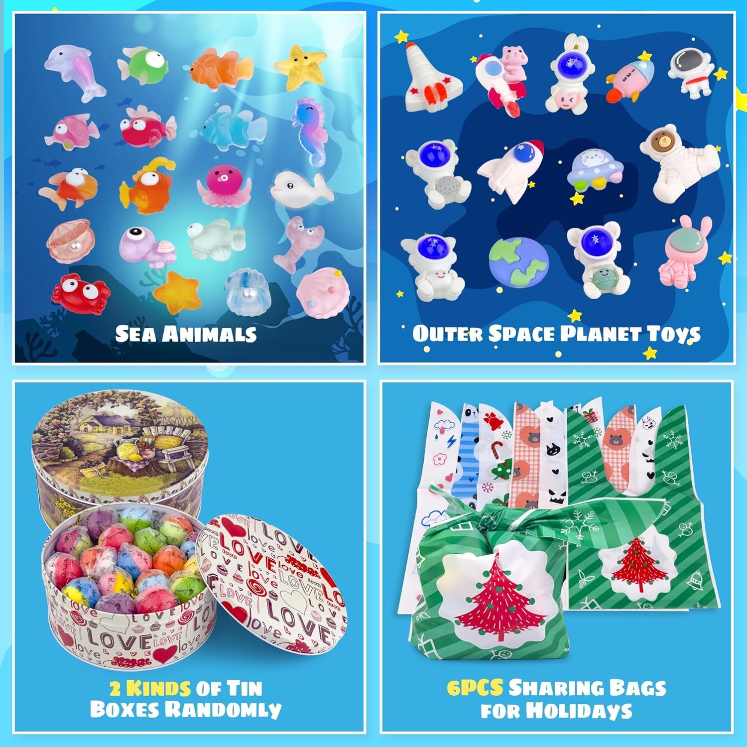 34PCS Bath Bombs for Kids with Toys Inside Girls and Boys, Surprise Bath Bombs with Ocean Animals and Space Planet Toys Inside, Natural Organic Bubble Bath Fizzies, Gift Tin Box for Christmas