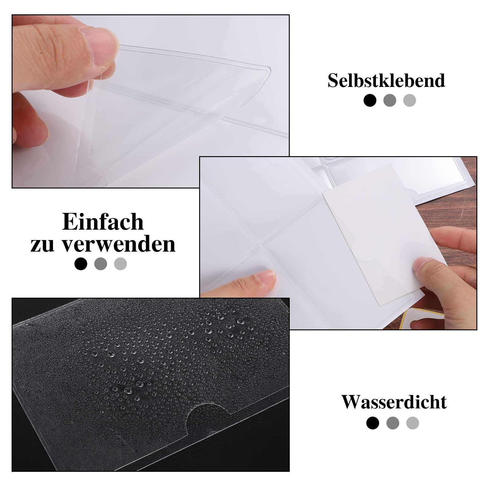 36 Stück Etikettenhalter Selbstklebend, 10 x 6 cm Beschriftungsfenster Selbstklebend Visitenkartenhüllen Kleben Transparent Wasserfest für Zuhause Büro Schule