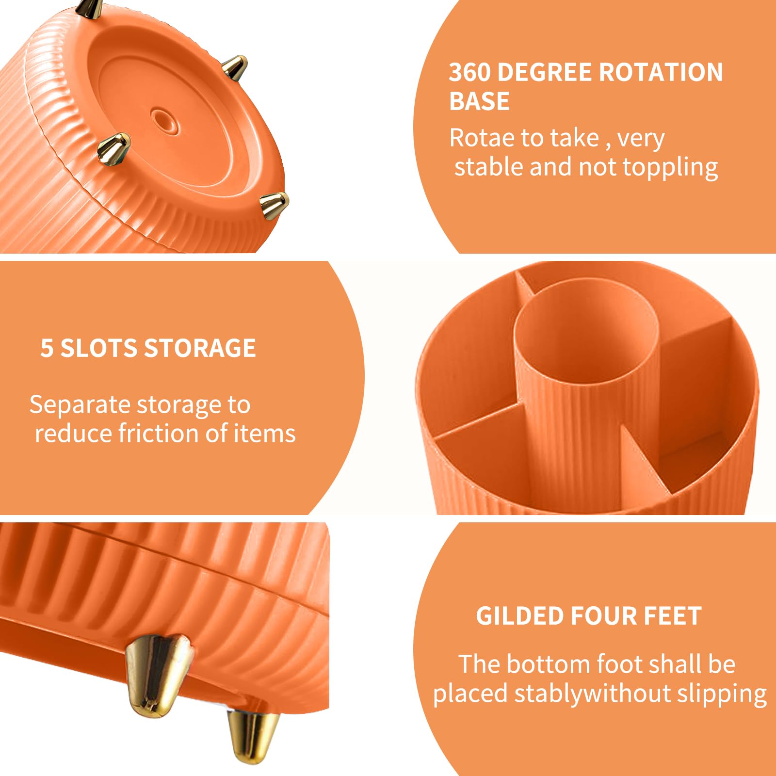 360° Drehbar Make up Organizer, Pinselhalter Kosmetik Aufbewahrung mit 5 Fächern, Aesthetic Schminktisch Organizers für Zimmer Decor Frisiertisch, Schlafzimmer,Badezimmer Organisation (Orange)