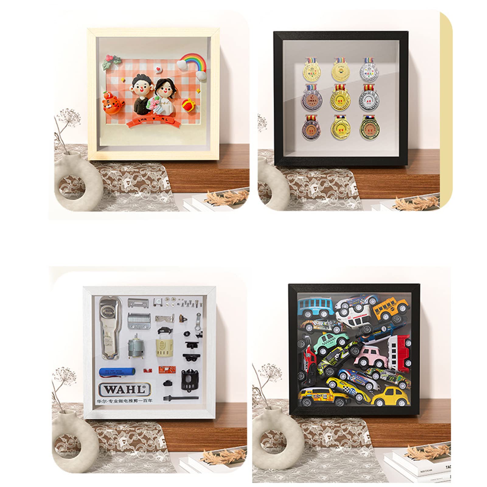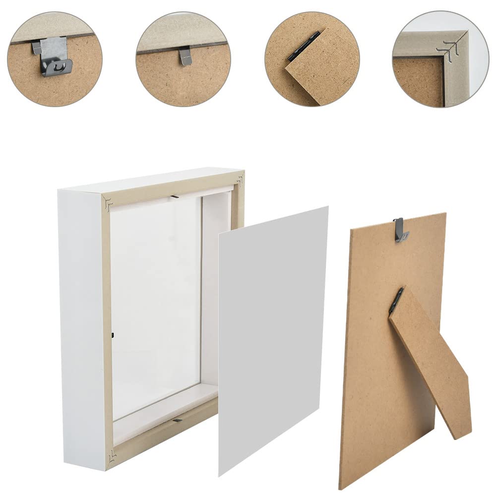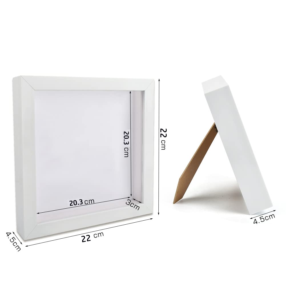 3D Bilderrahmen 20 x 20cm Tiefer Rahmen für Objekte bis 3cm-Objektrahmen zum Befüllen Quadratische Form, 3D bilderrahmen für Objekte Fotos Kunstwerke Erinnerungen Blumen (weiss)