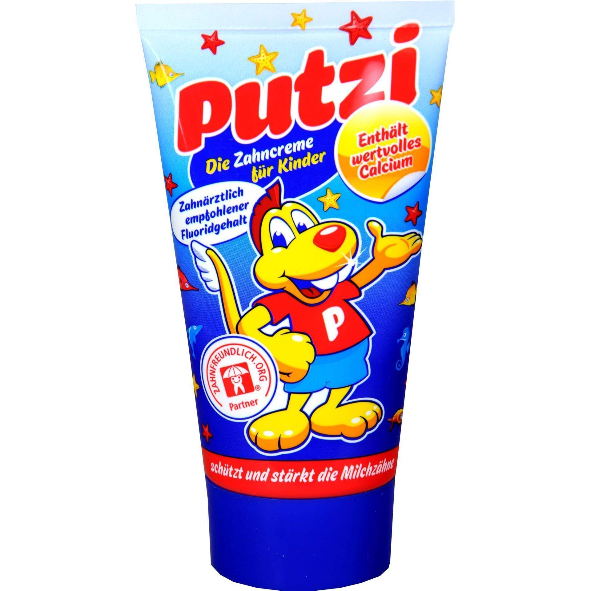 Kinder sollten frühzeitig an feste Zahnputzgewohnheiten herangeführt werden. Dabei wird jedoch noch relativ viel Zahncreme verschluckt. Die Ursache: Das Mundspülen wird von kleinen Kindern nur sehr unvollkommen beherrscht. Die Lösung: Putzi ist für Putzanfänger bis zum Schuleintritt bestimmt. Die Rezeptur der Zahncreme wurde speziell auf die zarten kindlichen Schleimhäute abgestimmt. Enthält Natriumfluorid. Süsse (ohne Zucker) und Aroma wurden so gewählt, dass die Kinder die Zahncreme gern benutzen, ohne zum Verschlucken angeregt zu werden.