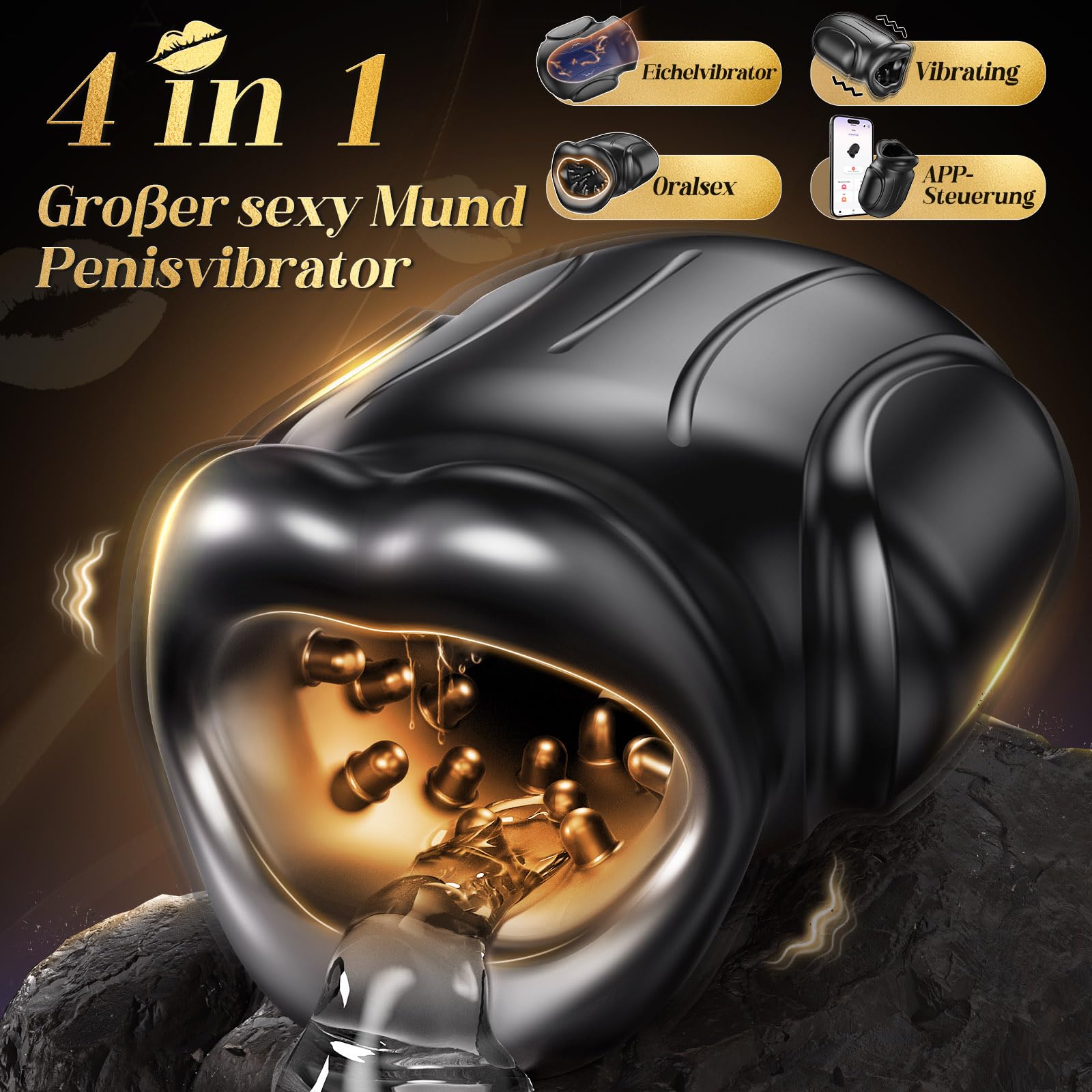 4 IN 1 Mundförmig Masturbieren für Männer, Weich Masturbator Oralsex Eichel Stimulator, Elektrischer Sex Spielzeug für die Männer Solo Leise Taschenmuschi Penis Vibrator mit 10 Vibrations & APP