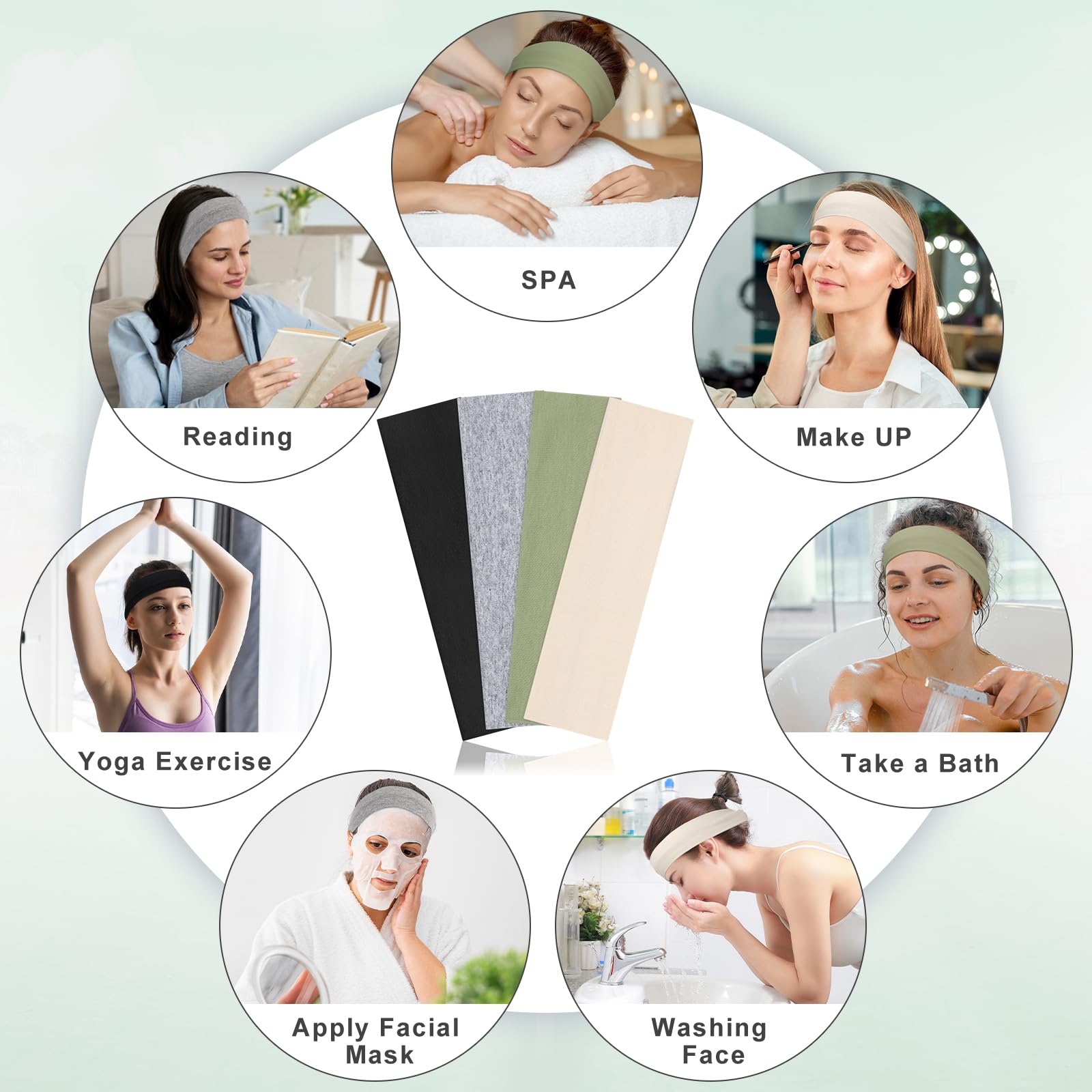 4 Stück Haarband Damen, Elastisches Stirnband Sport rutschfeste Haarbänder Schweißband Stirn für Yoga Fitness Joggen Workout (Grün,Hautfarbig,Grau,Schwarz)