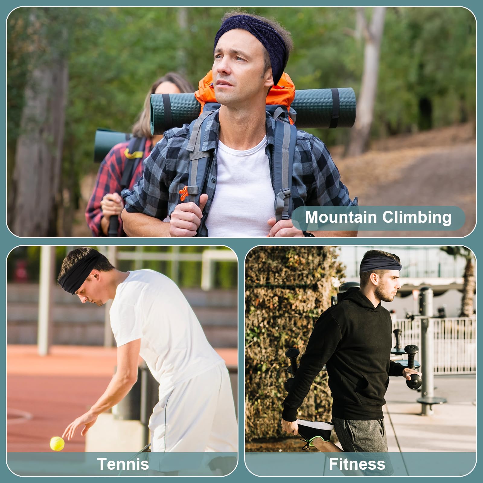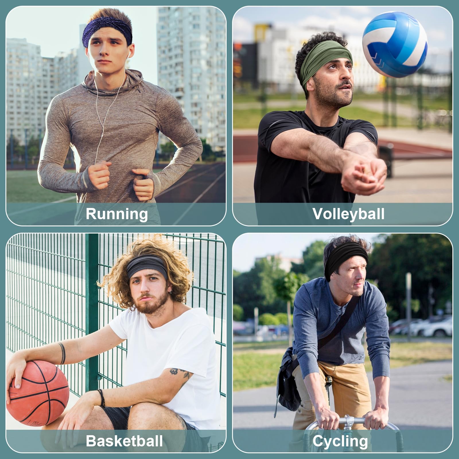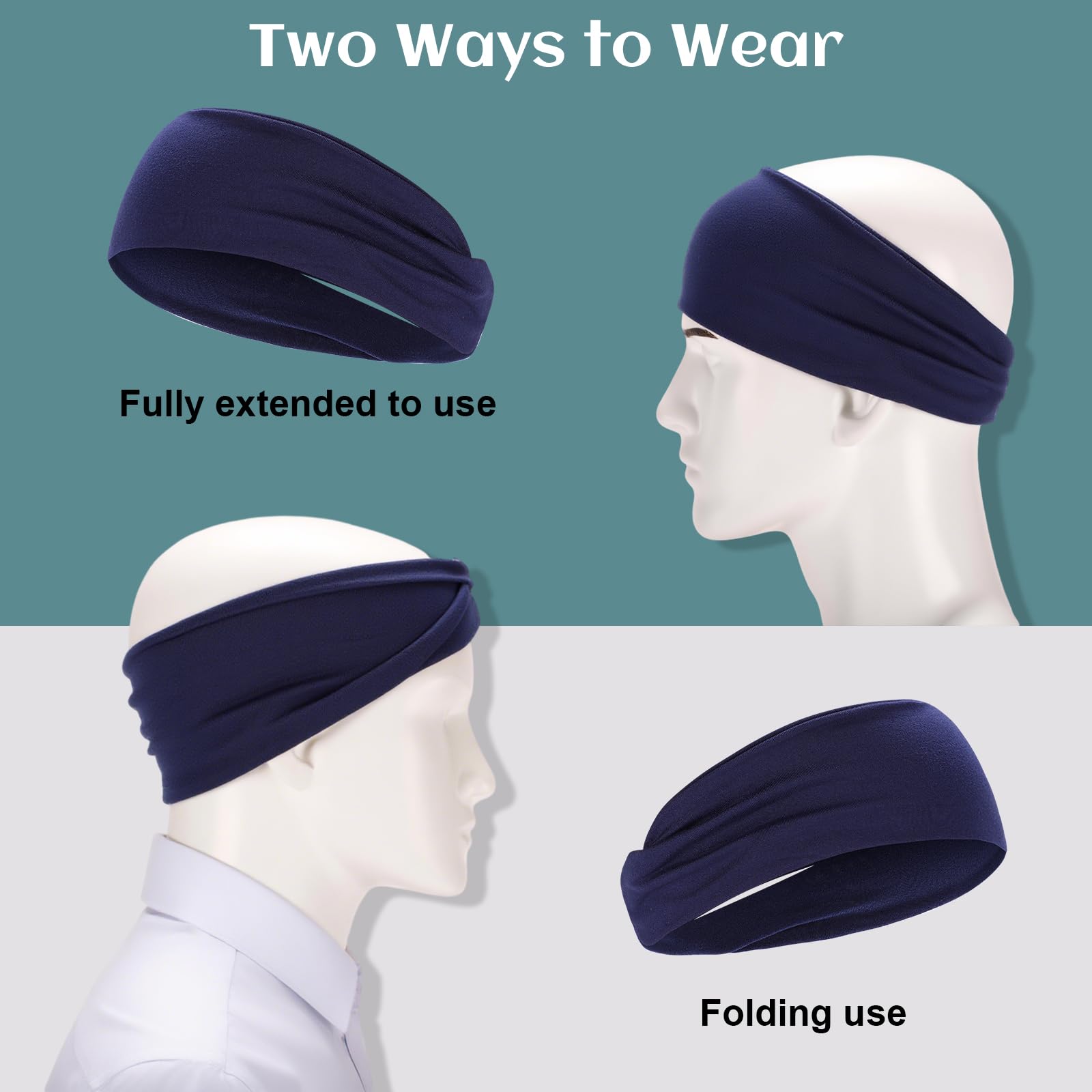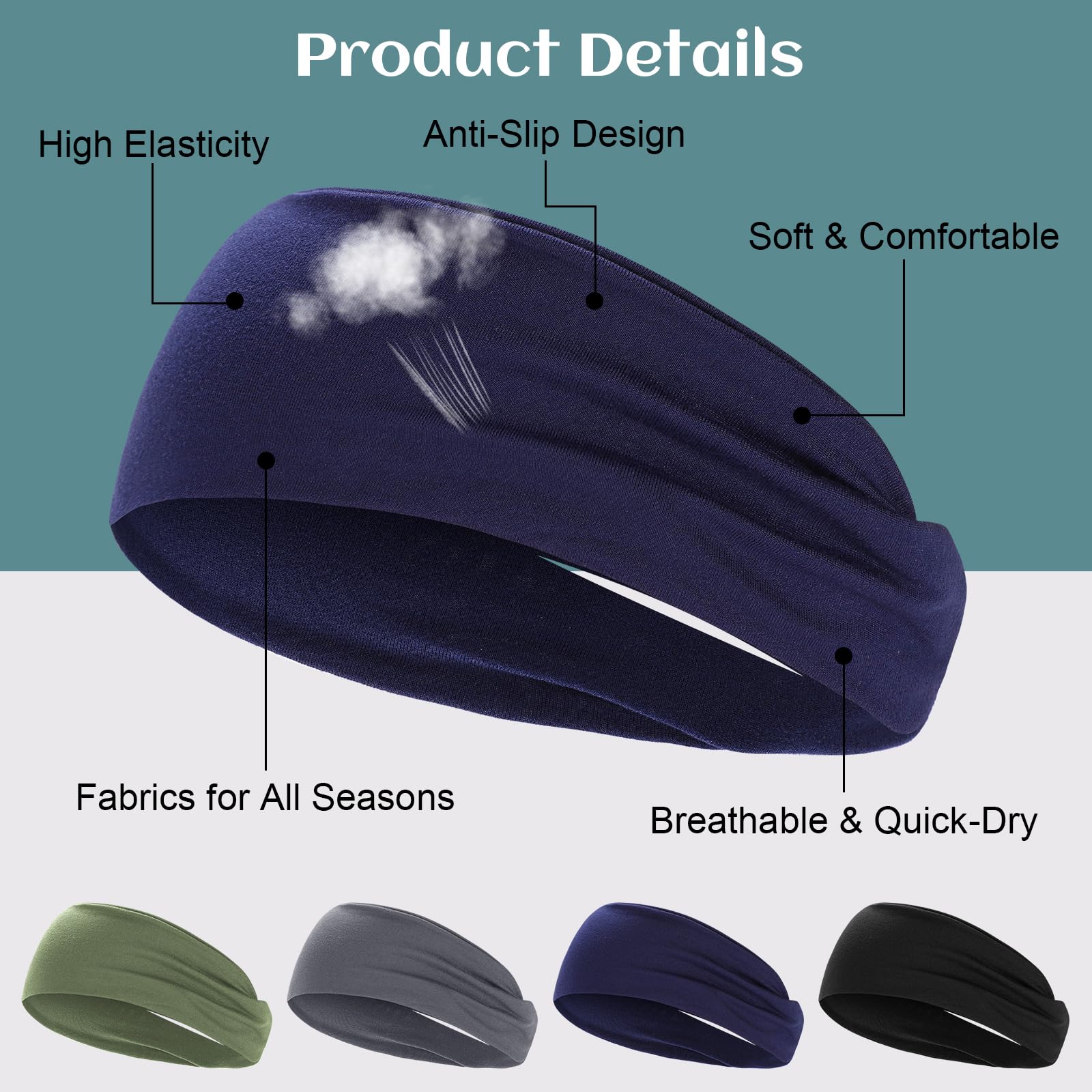 4 Stück Stirnband für Damen Herren, Elastisch Breites Haarband Sport Männer Atmungsaktiv Schweissband Stirn rutschfest für Fitness Laufen Basketball