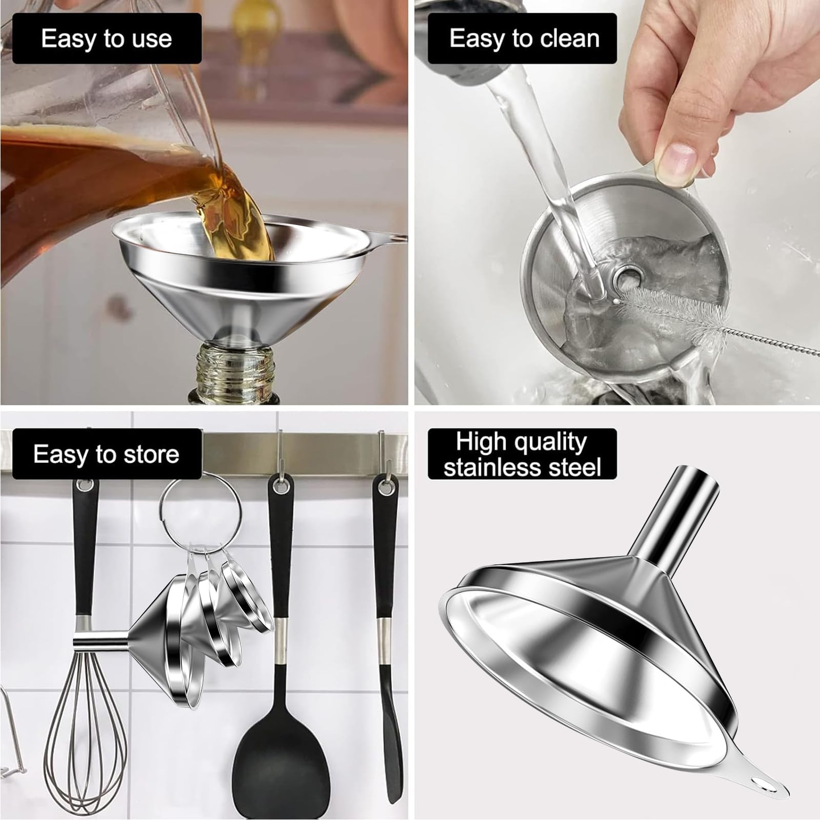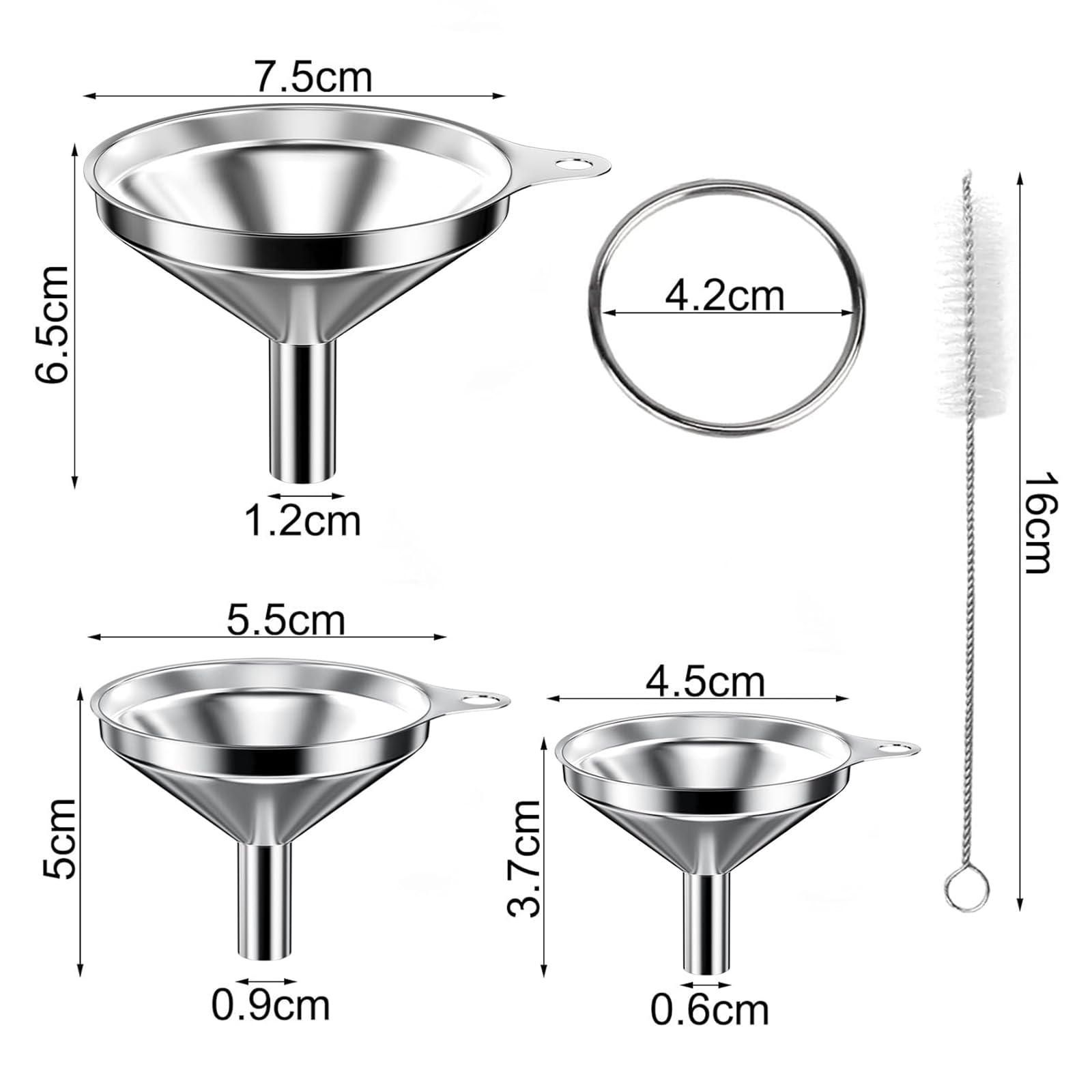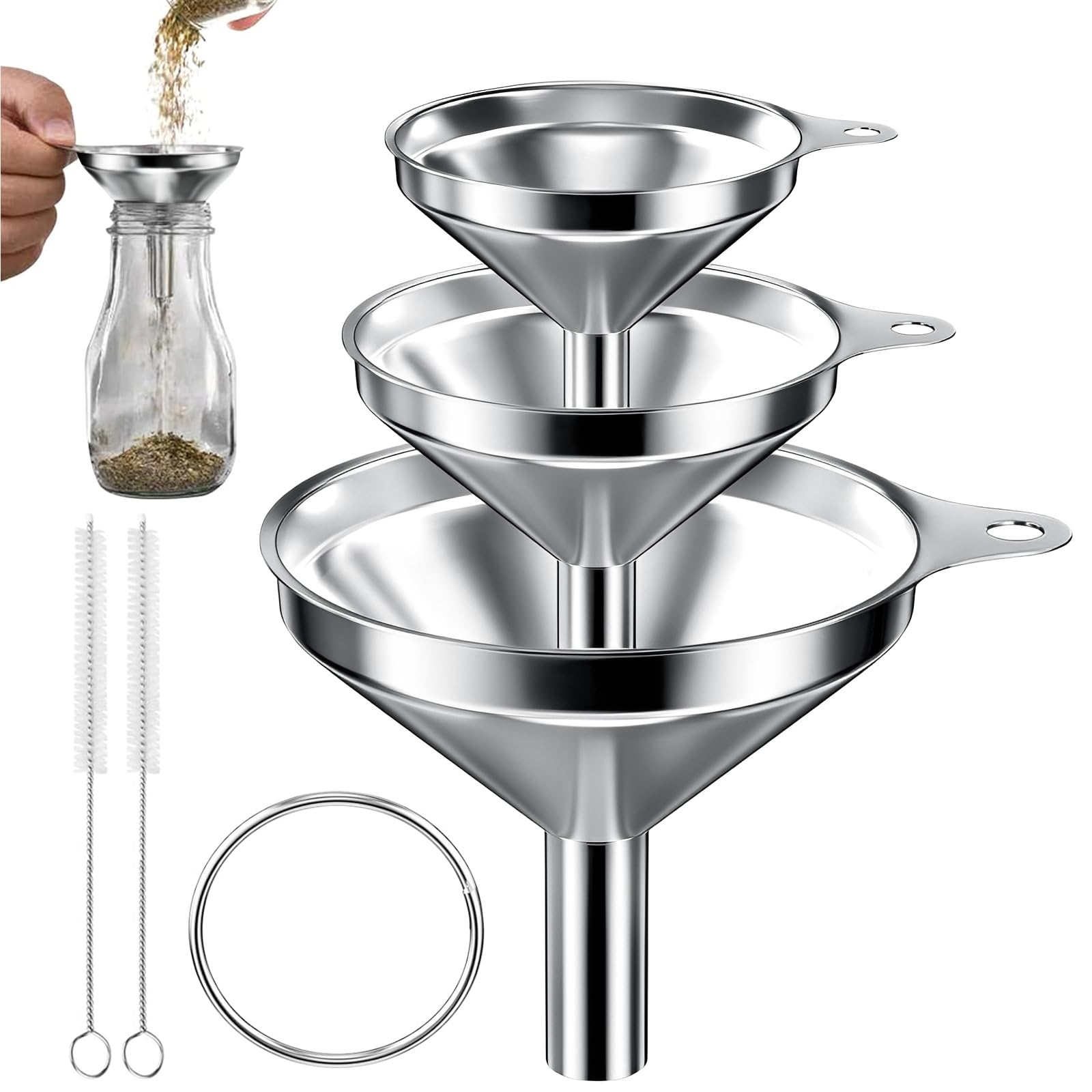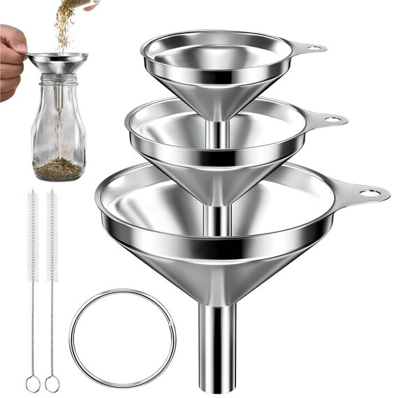 3 Grössen: 3 Filter: Set mit 3 Trichtern mit 7,5 cm, 5,5 cm und 4,5 cm Ausgiesserdurchmesser, um Ihren unterschiedlichen Bedürfnissen gerecht zu werden (2 Reinigungsbürsten enthalten)