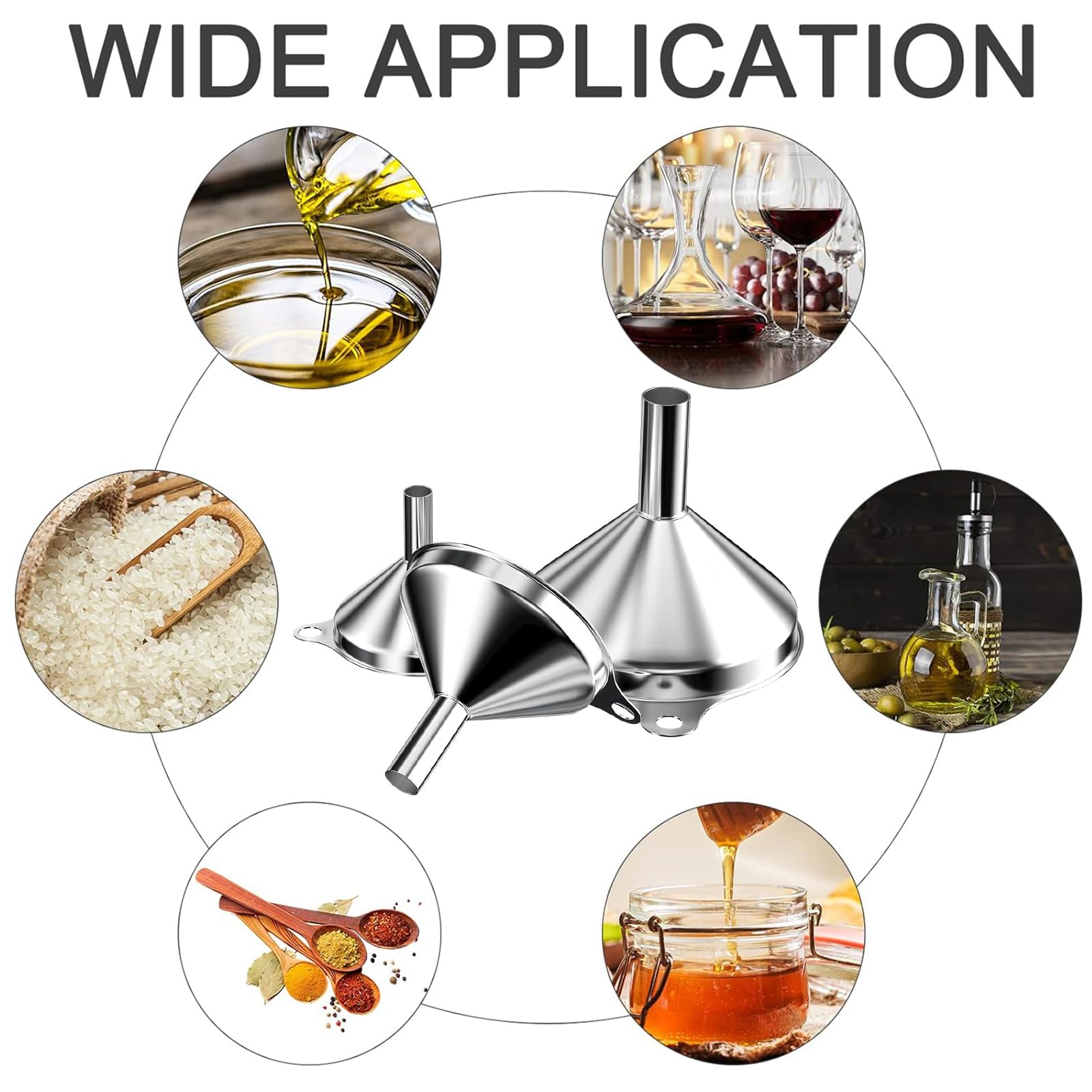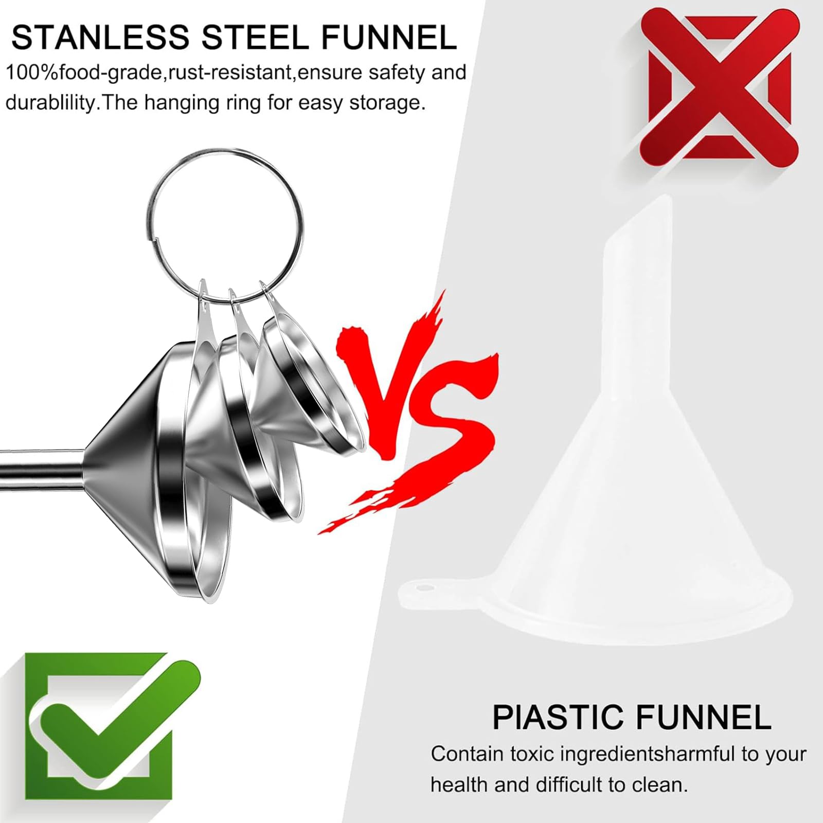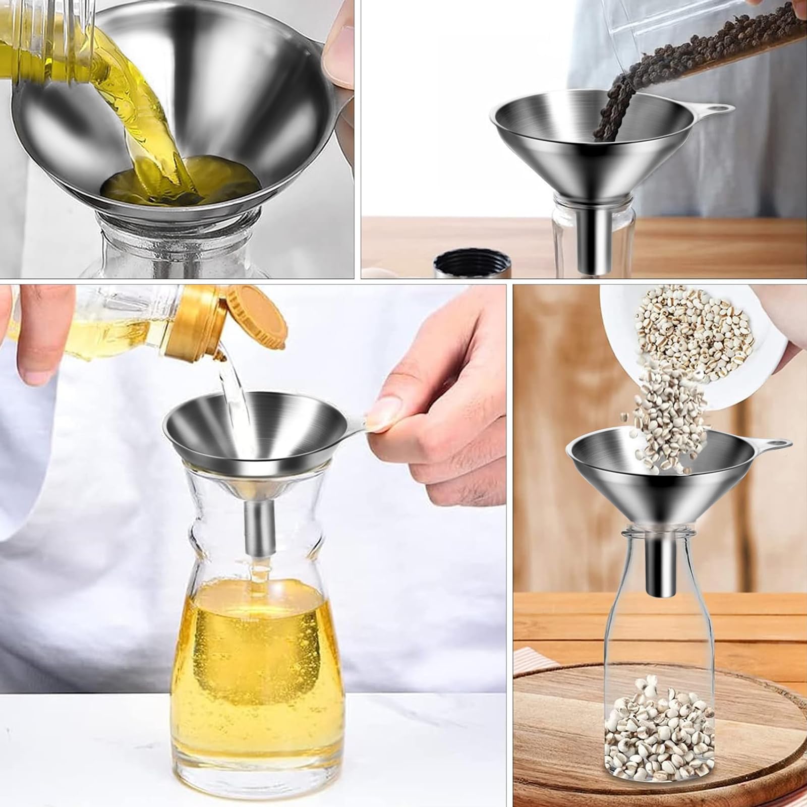 3 Grössen: 3 Filter: Set mit 3 Trichtern mit 7,5 cm, 5,5 cm und 4,5 cm Ausgiesserdurchmesser, um Ihren unterschiedlichen Bedürfnissen gerecht zu werden (2 Reinigungsbürsten enthalten)