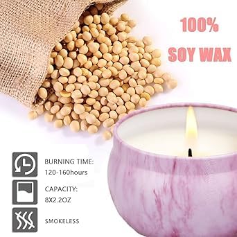 ① Ob Sie zu Hause für eine Date-Nacht, einen Yoga-Klasse, ein Bad oder einfach nur zum Lesen sind, unsere Soja-Kerzen werden den perfekten Ton setzen. Mit einer Brenndauer von bis zu 15-20 Stunden kann jede Duftkerze zu mehreren Anlässen genossen werden. ② Unser Sojawachskerzen-Set ist das perfekte Geschenk für einen Freund oder einen geliebten Menschen. Unsere Duftkerzen Geschenksets sind perfekt für Männer und Frauen zum Muttertag, Vatertag, Weihnachten, Geburtstag oder zur Hochzeit und sind ein bezauberndes Geschenk. Lassen Sie das Ambiente blühen und tauchen Sie Ihre Sinne in den Duft für einen fesselnden Duft ein. Produktspezifikationen: Zusammensetzung: 93 % Sojawachs, 7 % ätherisches Öl. Kopfnote: Wassermelonen-Smoothie, Lavendel, Zitronenverbena, Ananas, Sonnenuntergang, mediterraner Sonnenuntergang, Guava Litschi, Rosé Champagner. Gewicht: Kerze 85 g/Stück. Grösse: 6,2 x 4,2 cm. Brenndauer: 15–20 Stunden. Lieferumfang: 8 x Duftkerzen