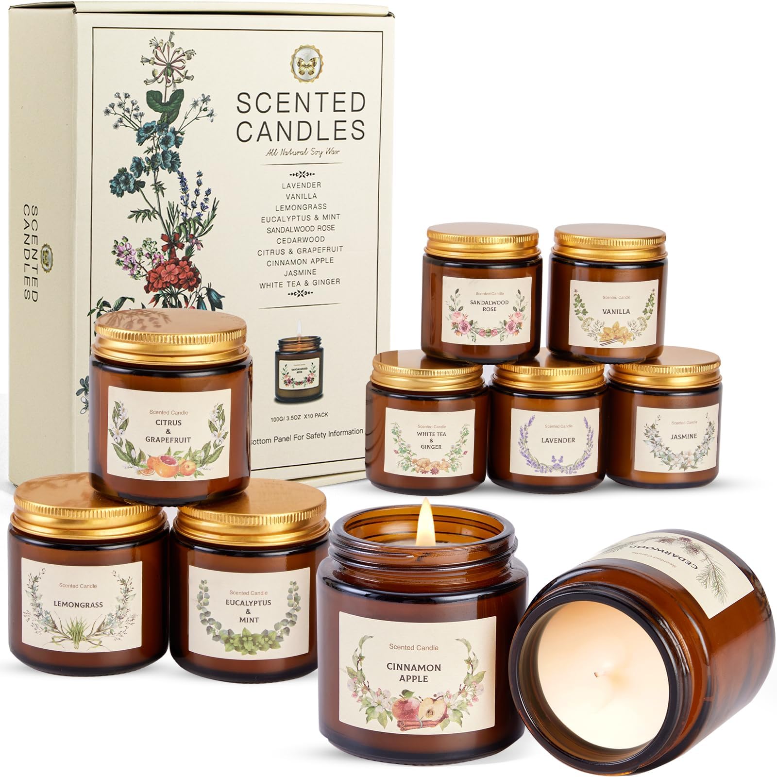 10 Stück Duftkerzen Geschenkset für Frauen, 10 Duft set Duftkerze im Glas,Sojawachs kerze geschenk 10 * 100g,250Std,Stressabbau Aromatherapie Set für Weihnachten Geburtstag Bad Spa Meditation