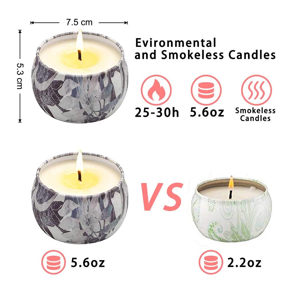 YMing Duftkerzen Geschenkset für frauen, 4 * 5.65Oz bis zu 25-30h, Deko,Outdoor Draussen Kerze,Kerzen set für Bad,Yoga,Spa,Entspannung,Stressabbau. 【4 lang anhaltende und angenehme Düfte】: Freesie; Lavendel; Rosmarin; Französische Vanille. Wohlige Düfte und warmes Kerzenlicht schaffen eine romantische und friedliche Atmosphäre. 【Natürliche und gesunde Inhaltsstoffe】: Die Duftkerzen bestehen aus natürlichem Sojawachs mit hochwertigen reinen ätherischen Ölen, bleifreien Bio-Baumwolldochten, die ohne schwarzen Rauch brennen, Aromatherapie und schaffen eine sicherere und gesündere Atmosphäre für den Körper. 【Längere Brenndauer】: Mit einem Fassungsvermögen von 5,65 oz pro Dose und einer Brenndauer von 25-30 Stunden brennt es mit einem angenehmen Duft und einem warmen, flackernden Kerzenlicht, das Aromatherapie bietet und eine stimmungsaufhellende Atmosphäre für entspannende Entspannung schafft. 【Tragbare Kerzen und Mehrzweckgläser】: Jede Kerze ist versiegelt und kann überallhin mitgenommen werden. Nachdem die Kerze ausgebrannt ist, können diese schönen Gläser weiterhin zur Aufbewahrung oder Dekoration verwendet werden. Ideal für den Einsatz im Innen- und Aussenbereich. Ideal für den täglichen Gebrauch, Hochzeiten, Aromatherapie, Spas, Meditation, Bäder, Massagen, Abendessen bei Kerzenschein, Valentinstag. 【Die perfekte Geschenkwahl】: Eine Vintage-Geschenkbox, sehr dekorativ und mit einem einladenden Duft, dazu der Genuss von warmem und gemütlichem Kerzenlicht - genau das Richtige für Küche, Wohnzimmer, Schlafzimmer, Bad, Yogaraum, Spa-Raum, Büro, Hotel, etc. Kann auch als süsses Geschenk für Partys, Hochzeiten, Jahrestage, Geburtstage, Halloween, Thanksgiving, Weihnachten, Valentinstag, Muttertag verwendet werden.