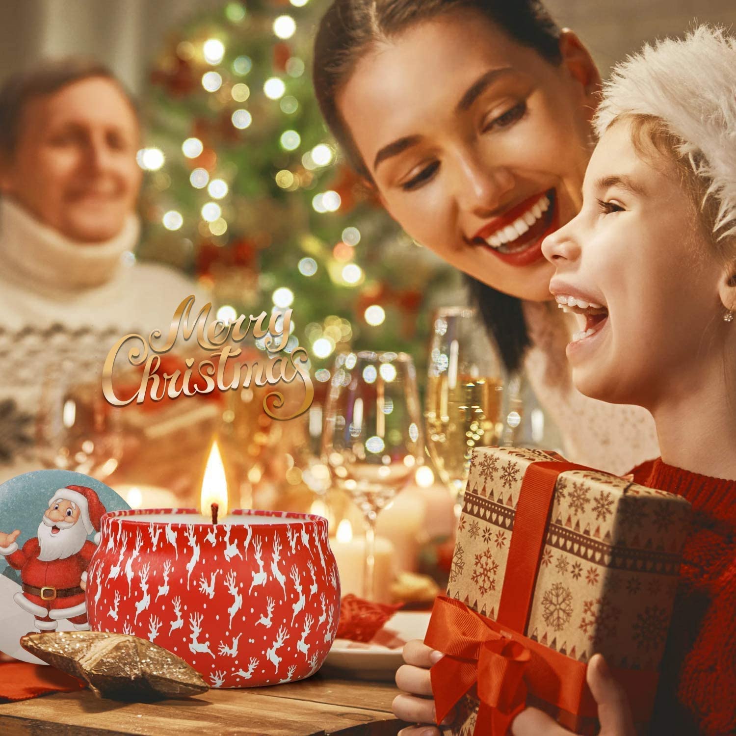 4 Stück Weihnachtsduftkerzen, Aromatherapie-Kerzen aus natürlichem Sojawachs, Geschenkset für Weihnachten, niedliche Deko-Kerzen, 5,65 oz Duftkerzen