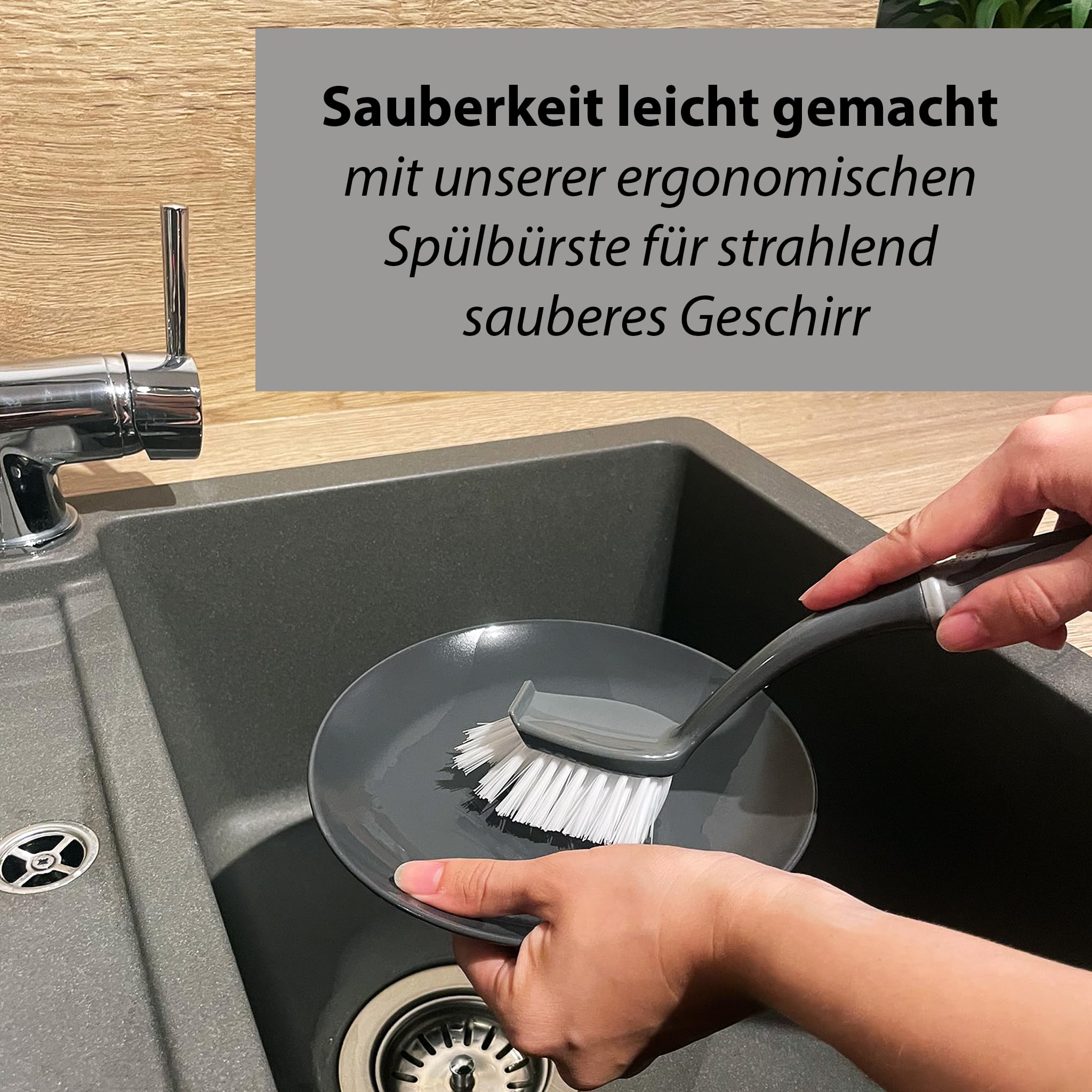4 x Spülbürste grau/schwarz VonBueren | Geschirrbürste/Küchenbürste/Bürsten für die Küche und zur Reinigung | Spülbürsten | Bürste mit ergonomischem Griff Länge ca. 29 cm| Reinigungsbürste