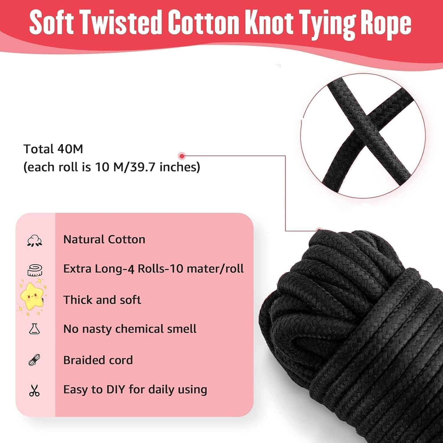 - Sex-Fesseln Japanische Shibari Seil BDSM Bondage-Set – Dieses Sex-Bondage-Set enthält insgesamt Baumwollseillänge 4 x10 Meter schwarze Seile.geeignet für eine Vielzahl von Bindemethoden. Sie können überall am Körper angewendet werden,Das Fesselseil ist lang und kann zum Fesseln von Händen, Beinen oder dem Körper verwendet werden, dieses Bondage-Set für Erwachsene kann Ihre vielfältigen Bedürfnisse erfüllen,Kann je nach Bedarf in verschiedene Längen geschnitten werden.