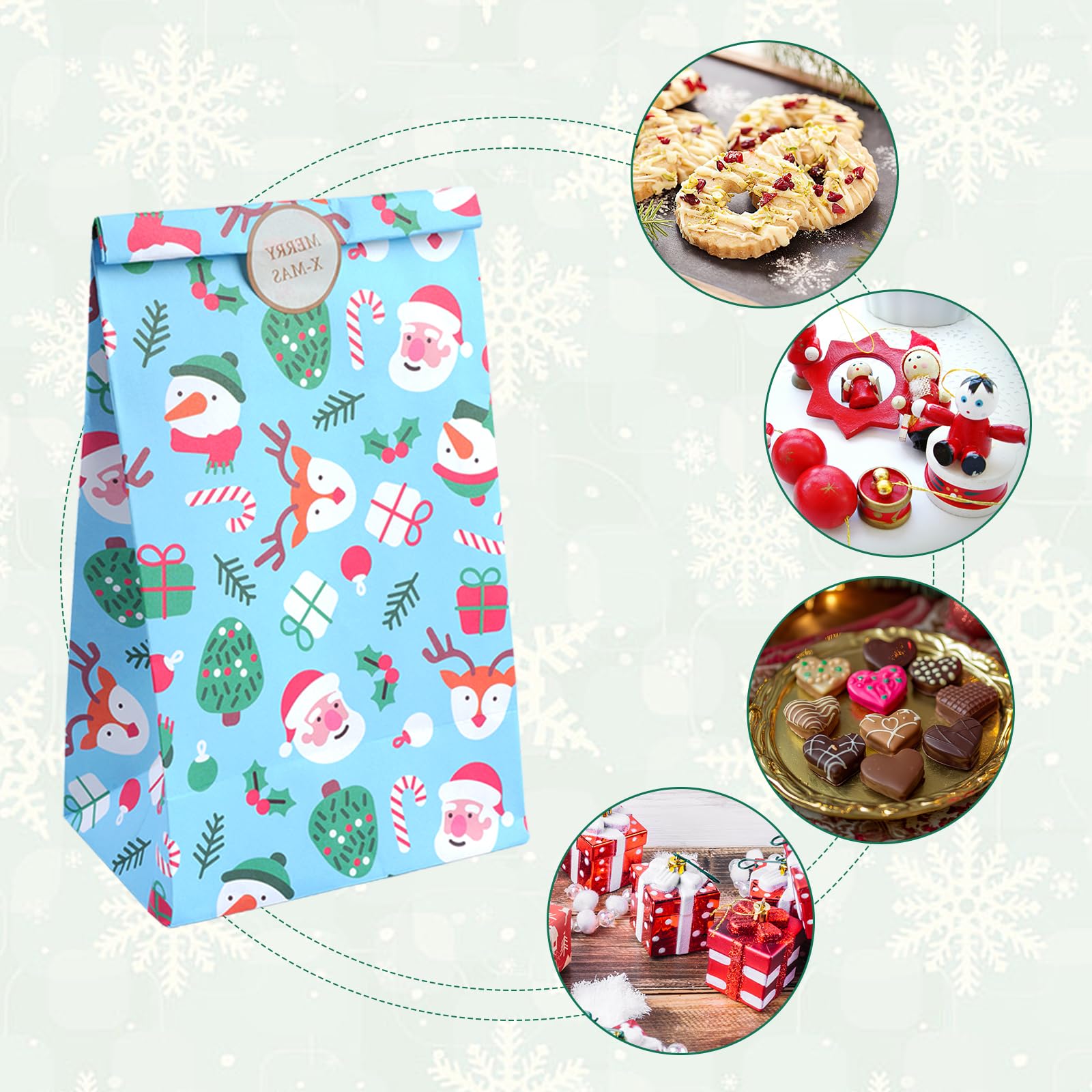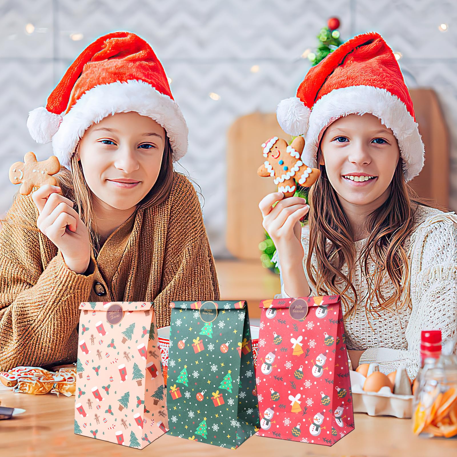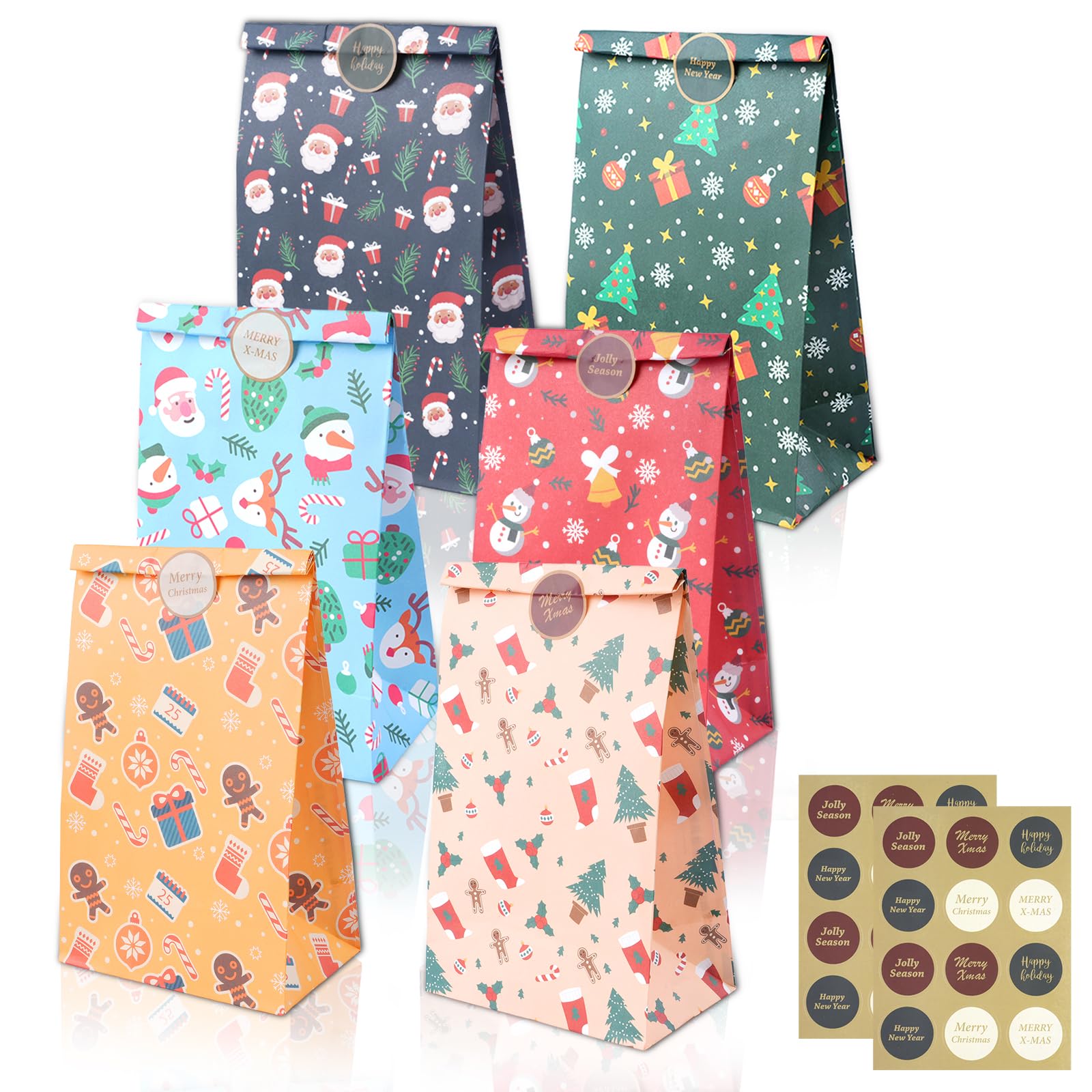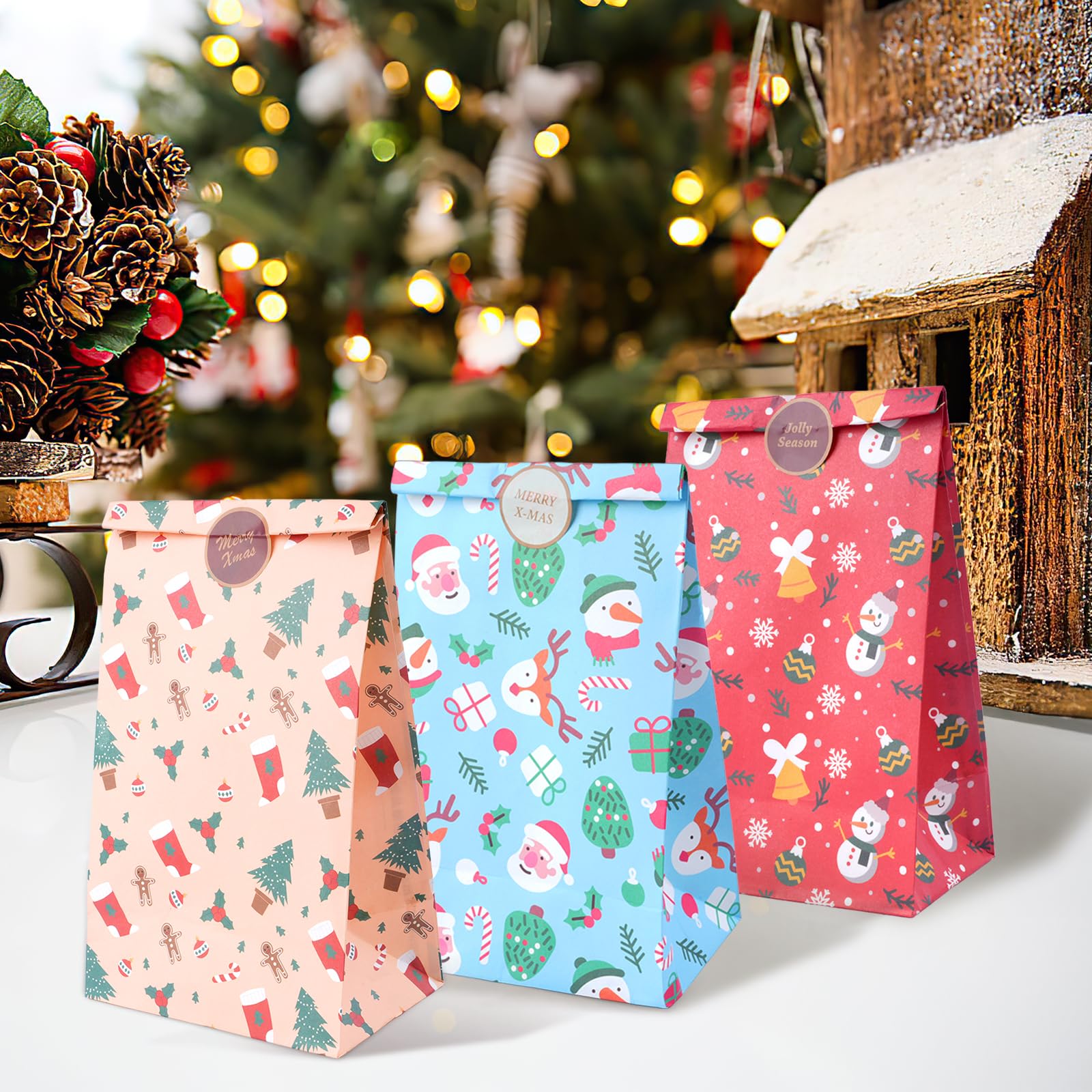 Deepton Geschenktüten Weihnachten, 24 Stück Weihnachtstüten Klein mit Aufklebern, Bunte Papiertüten Weihnachten zum Befüllen, Multifunktionale Papier Tüten für Kekse, Klein Geschenke, Partys