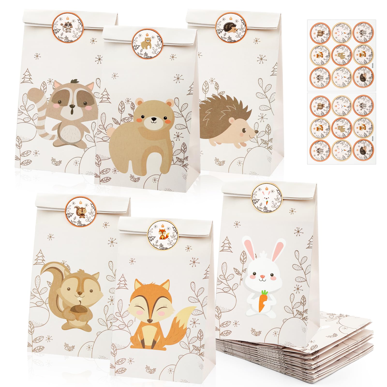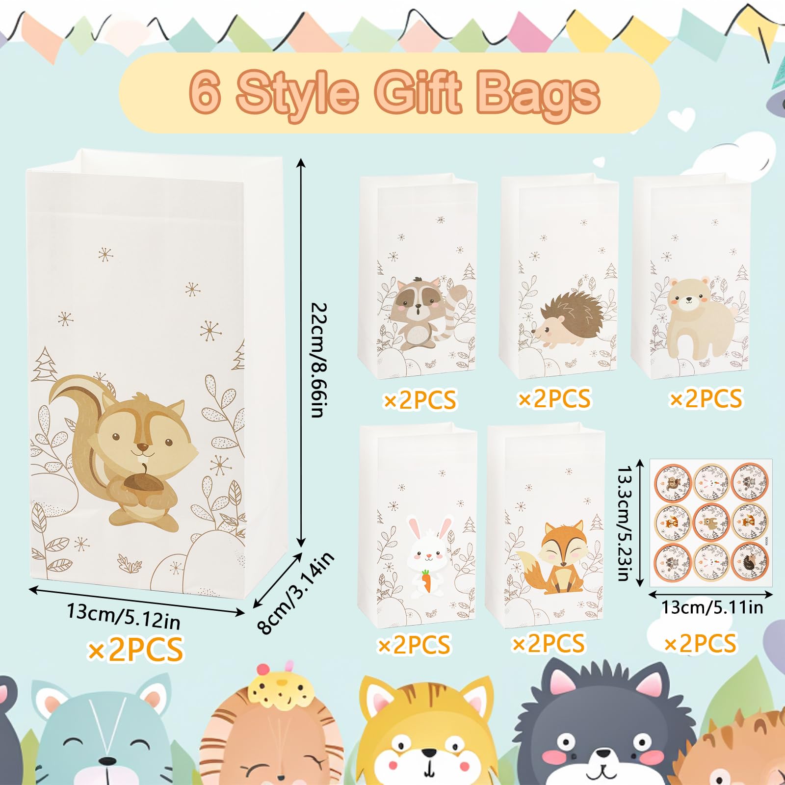 12 Stück Geschenktüten Kindergeburtstag, Tierische Mitgebsel Tüten mit 18 Aufkleber, Papiertüten Kindergeburtstag, Tierische Geburtstagstüten Kinder, Geschenktüten Klein für Mitgebsel Kindergeburtstag