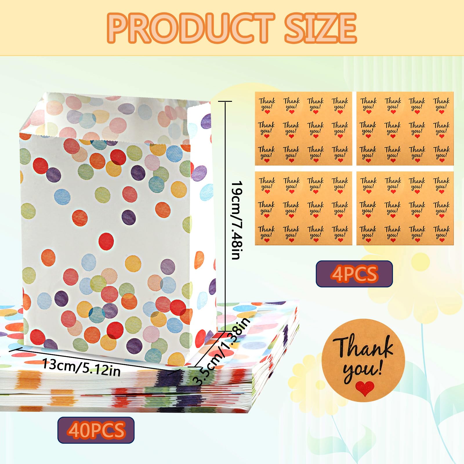 40 Stück Geburtstagstüten, Papiertüten, Mitgebsel Tüten,Geschenktüten Kindergeburtstage Geschenktüten Kindergeburtstag mit 48 Aufkleber Runde Punkte Papiertüten Kindergeburtstag für Hochzeit Party