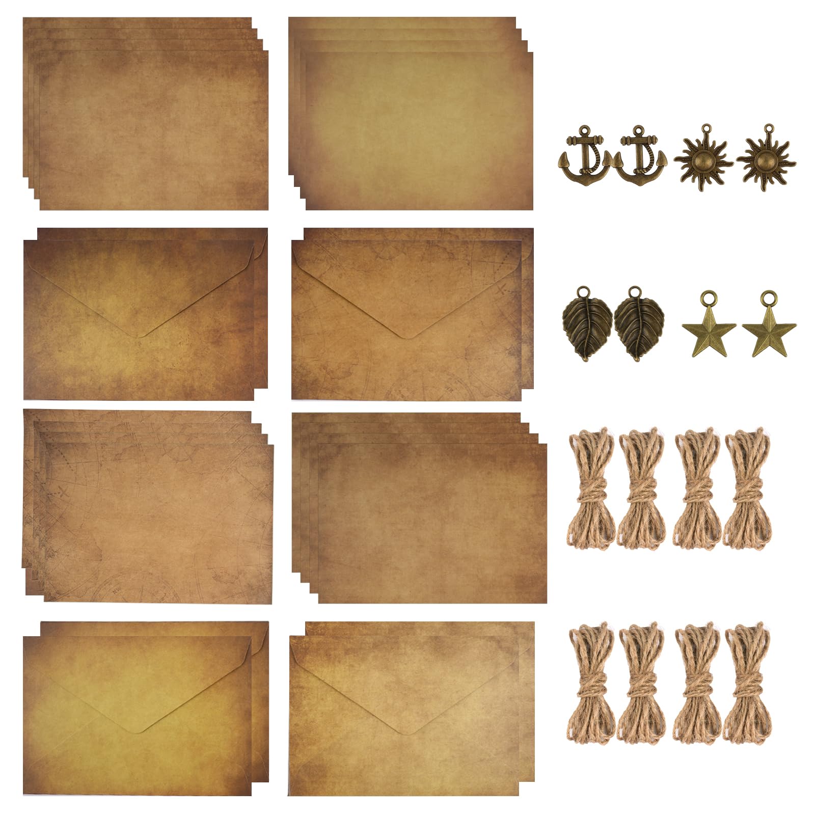 • Retro-Schreibset :Sie erhalten ein 40 Stück Vintage Schreiben set,darunter 12 Stück Vintage-papier Briefumschläge,16 Stück A5-Briefpapier, 8 Stück dekorative Schlüssel und 8 Stück Hanfseile – ideal für kreatives Schreiben und Briefpapier mit Umschlag. Perfekt für handschriftliche Notizen oder romantische Liebesbriefe.