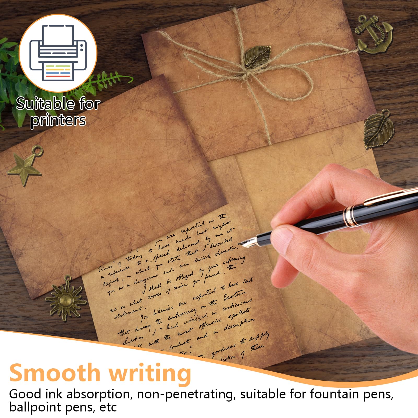 • Hochwertiges Kraftpapier: Jedes Vintage-Papier besteht aus hochwertigem Kraftpapier mit einzigartiger Textur, glatter Schrift, bricht nicht leicht, nimmt Tinte gut auf und ist für Füllfederhalter, Kugelschreiber usw, Geeignet für die meisten Drucker