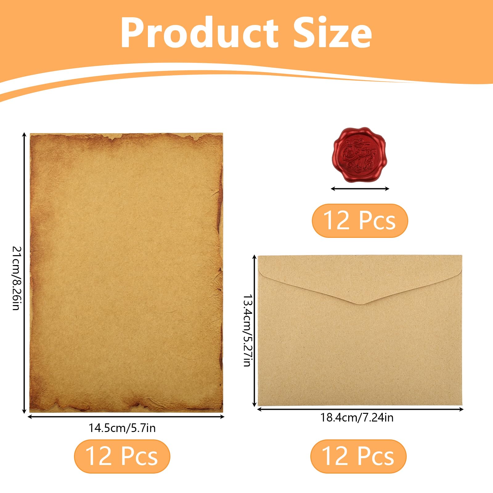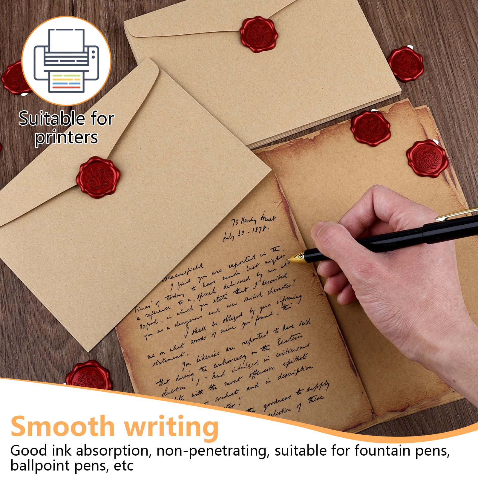 40 Stück Vintage Briefpapier mit Umschlag, Set Vintage Schreiben mit 12 Vintage-papier Briefumschläge, 16 A5 Briefpapier und 12 Wachssiegel-aufkleber, für Liebesbrief, Hochzeit,Geburtstag,Weihnachten