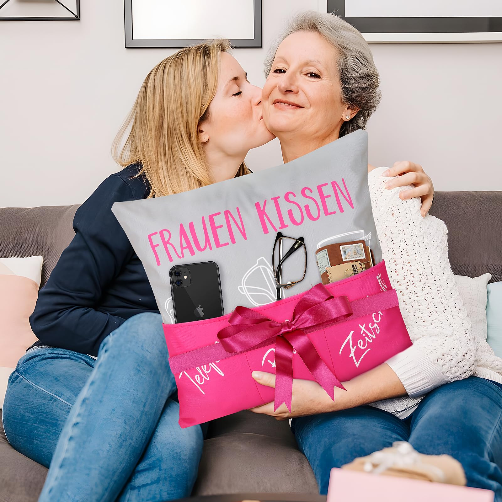GEBETTER 45 x 45cm Zierkissenbezug mit 6 Taschen Frauen Kissen Lustige Kissenbezug zum Befüllen Kissenhülle Geschenk Zierkissenhülle zum Geburtstag Dekokissenhülle Weihnachten Sofakissenhülle