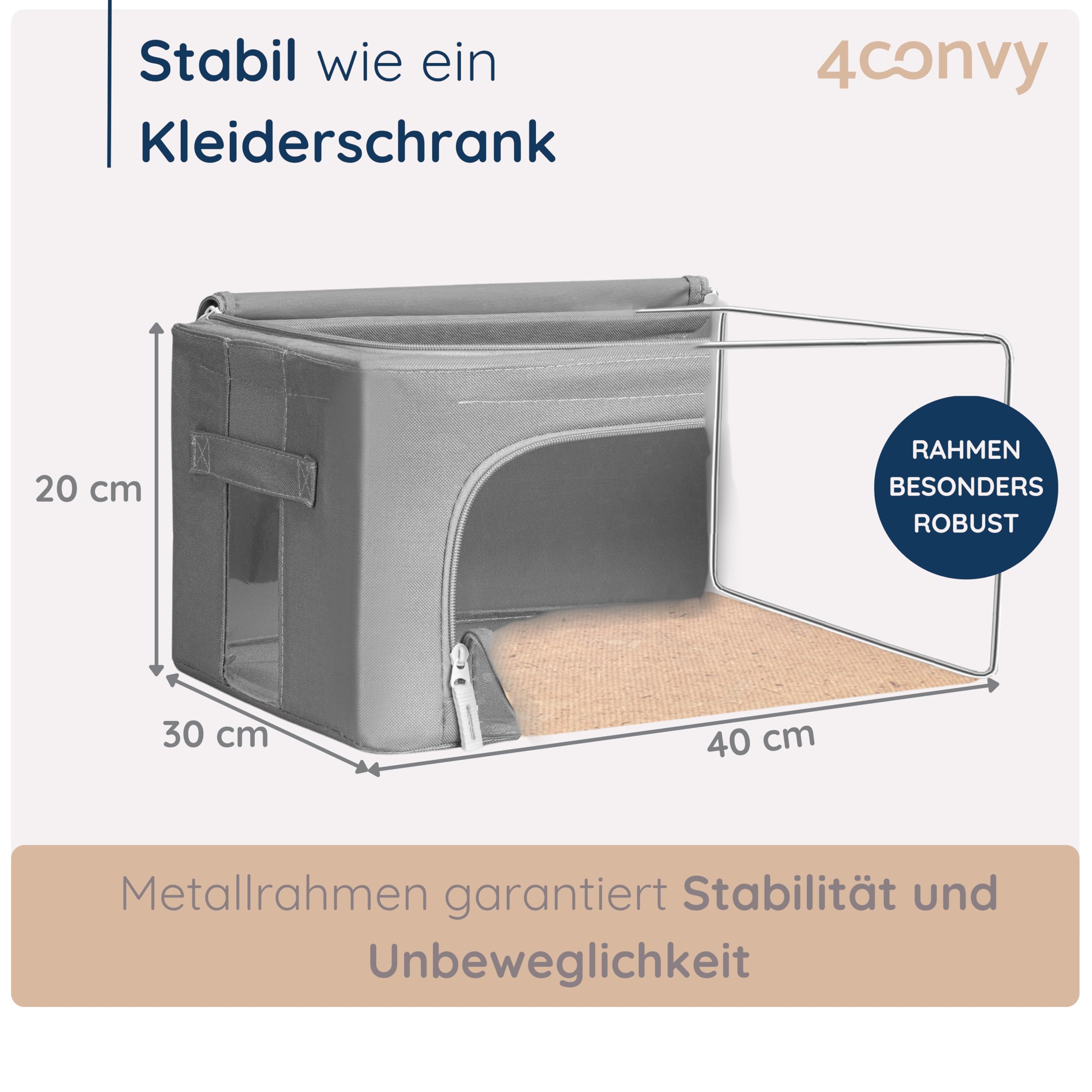 4CONVY Kleideraufbewahrung Kleiderschrank Box mit Reissverschluss Metallrahmen - grosse faltbare stapelbare Aufbewahrungsbox -3x24L Aufbewahrungstaschen - Kleiderbox für Bettdecke Kleidung Aufbewahrung