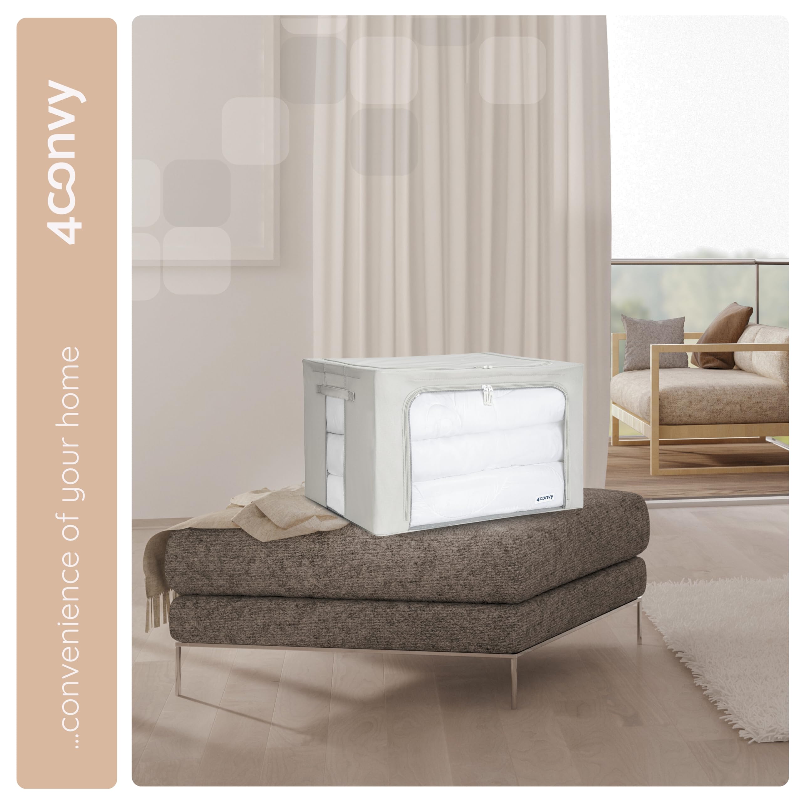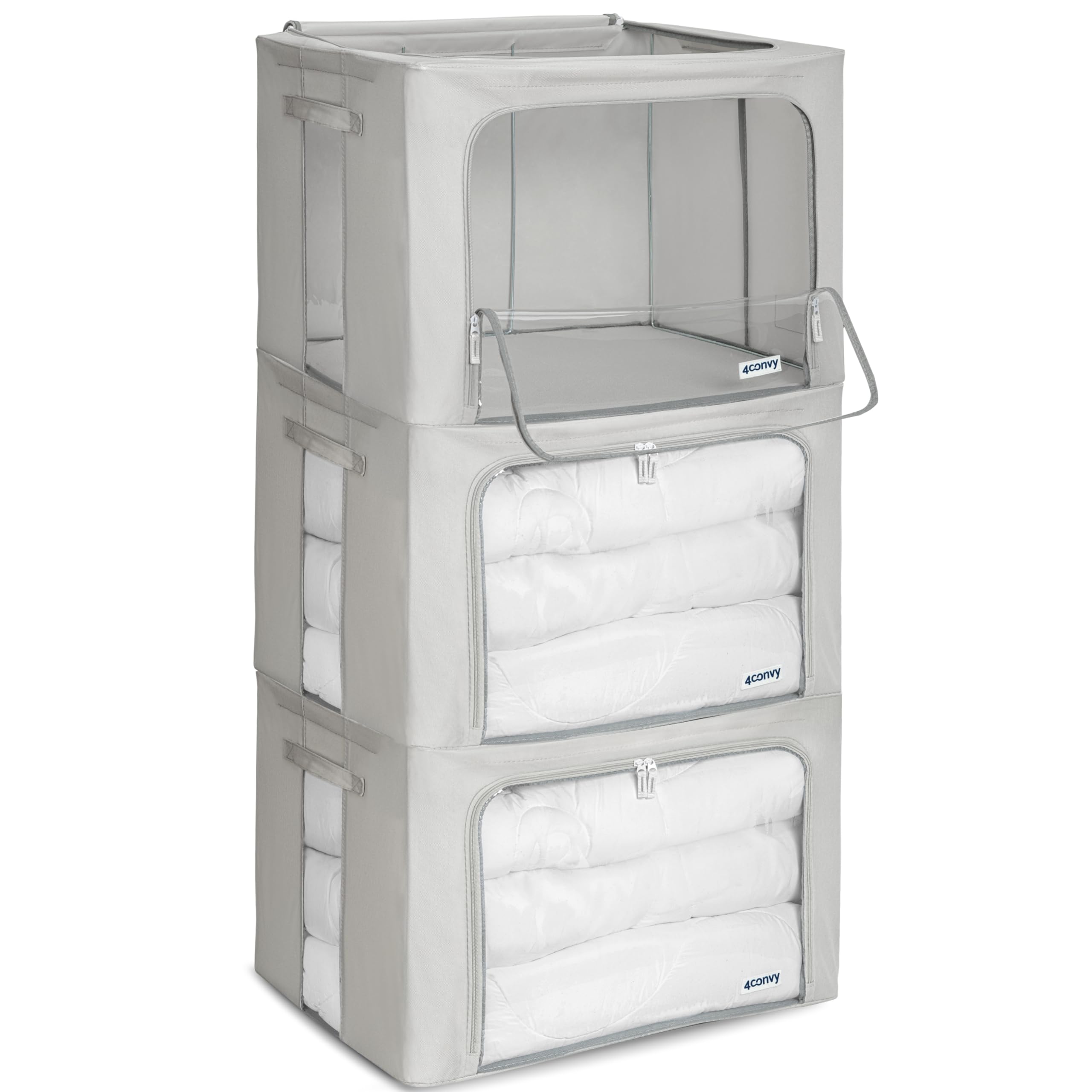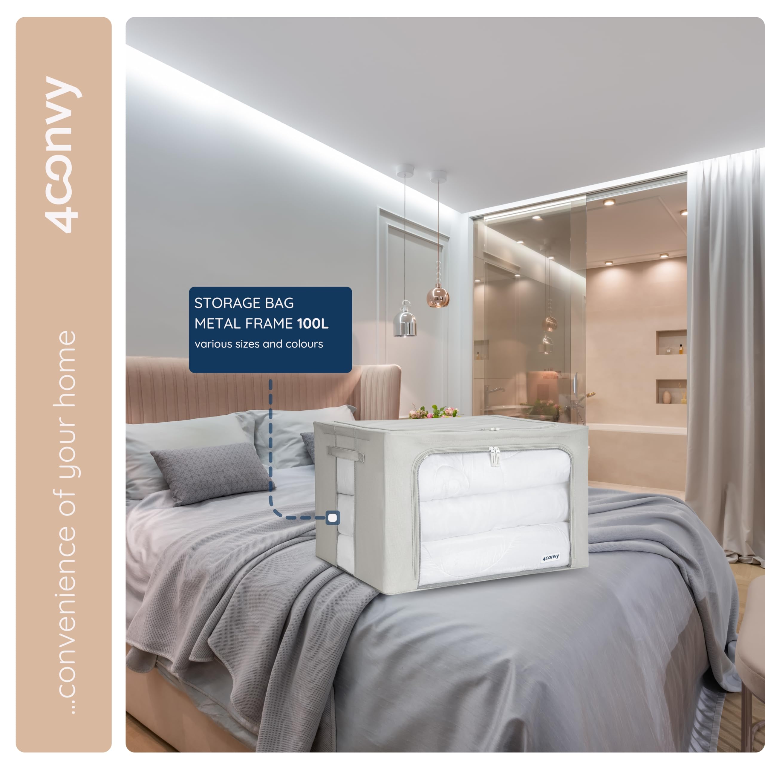 4CONVY Kleideraufbewahrung Kleiderschrank Box mit Reissverschluss Metallrahmen - grosse faltbare stapelbare Aufbewahrungsbox -3x100L Aufbewahrungstaschen - Kleiderbox für Bettdecke Kleidung Aufbewahrung
