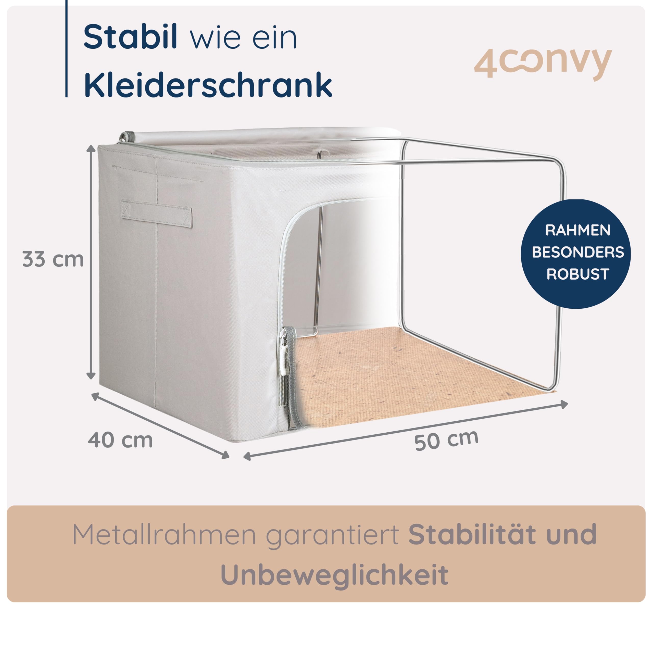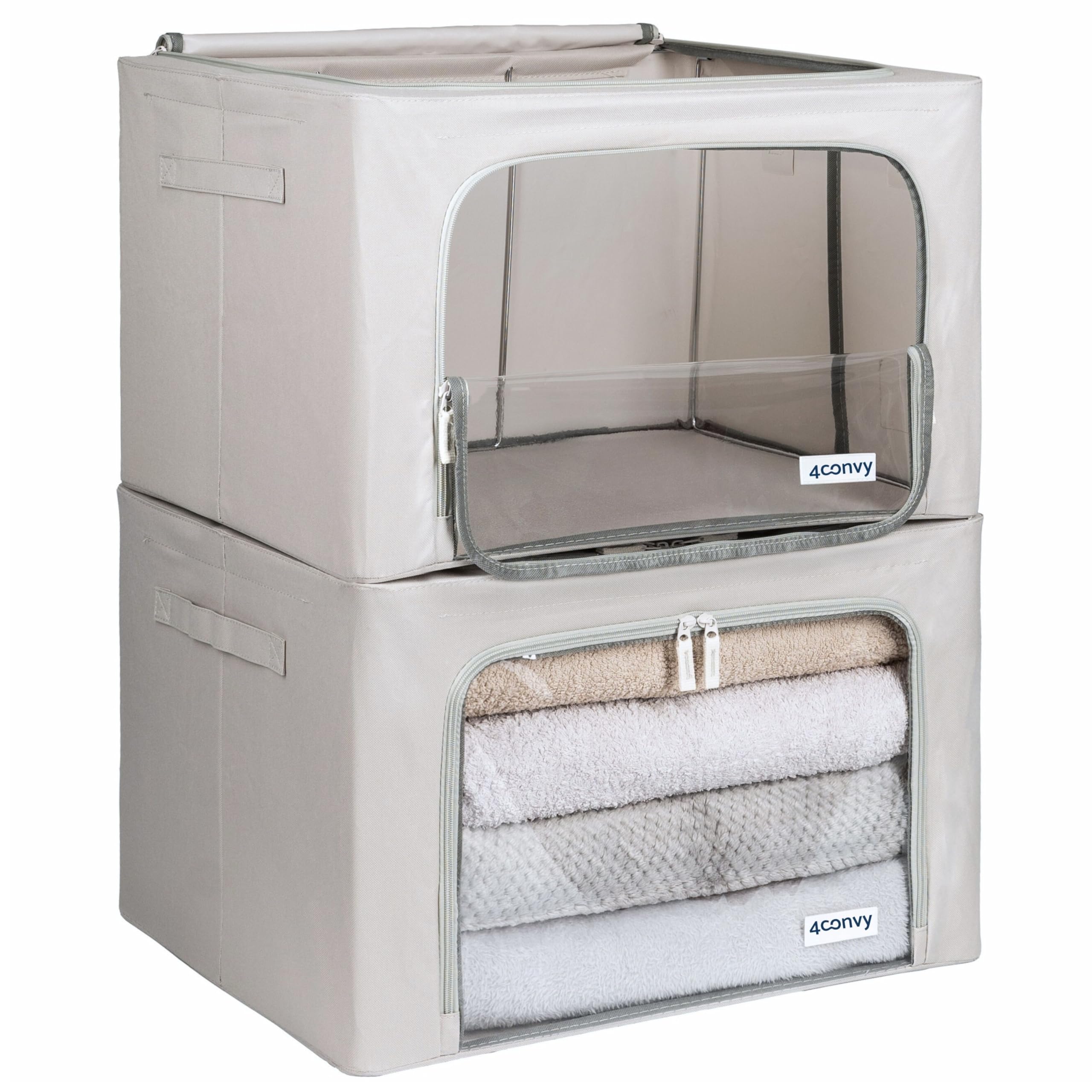 4CONVY Kleideraufbewahrung Kleiderschrank Box mit Reissverschluss Metallrahmen - grosse faltbare stapelbare Aufbewahrungsbox -2x66L Aufbewahrungstaschen - Kleiderbox für Bettdecke Kleidung Aufbewahrung