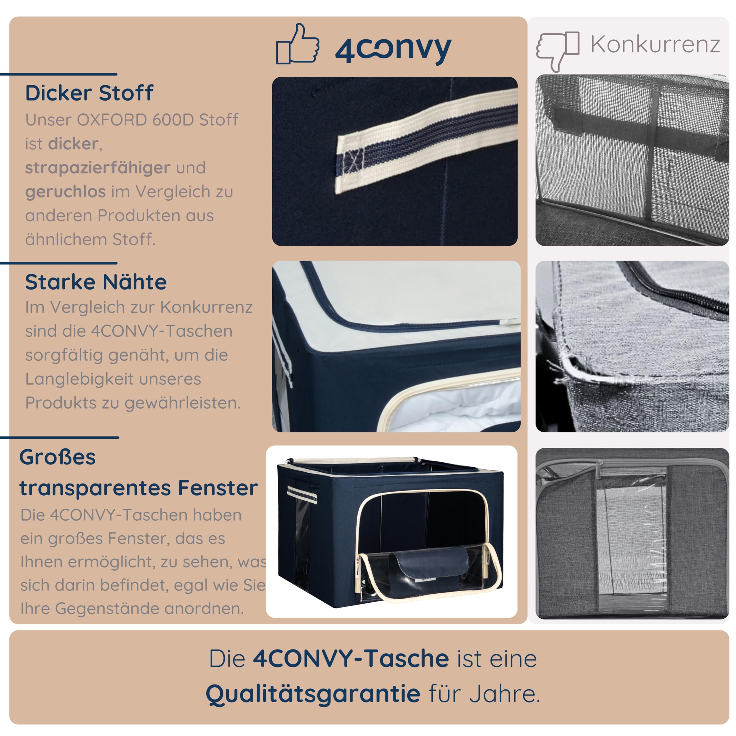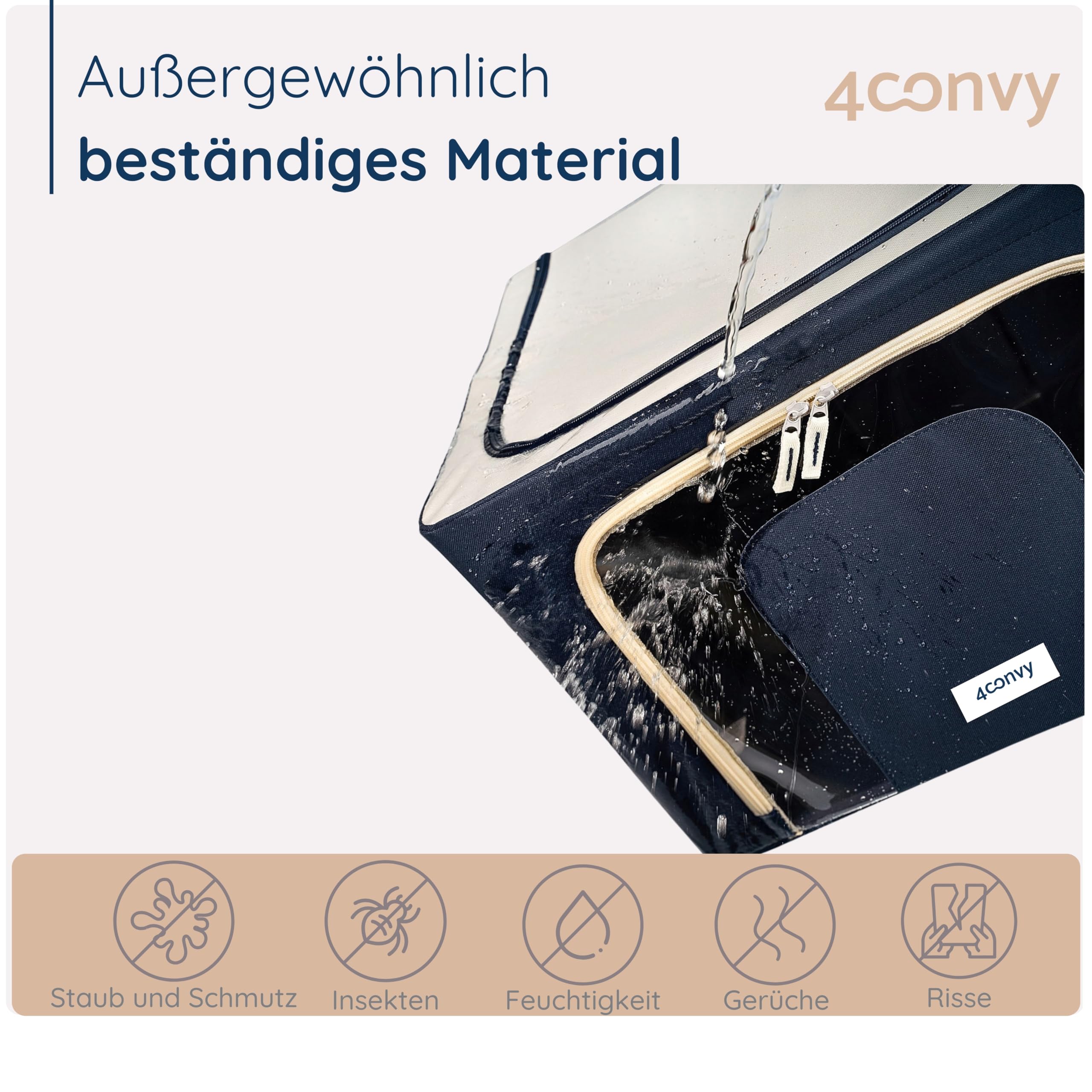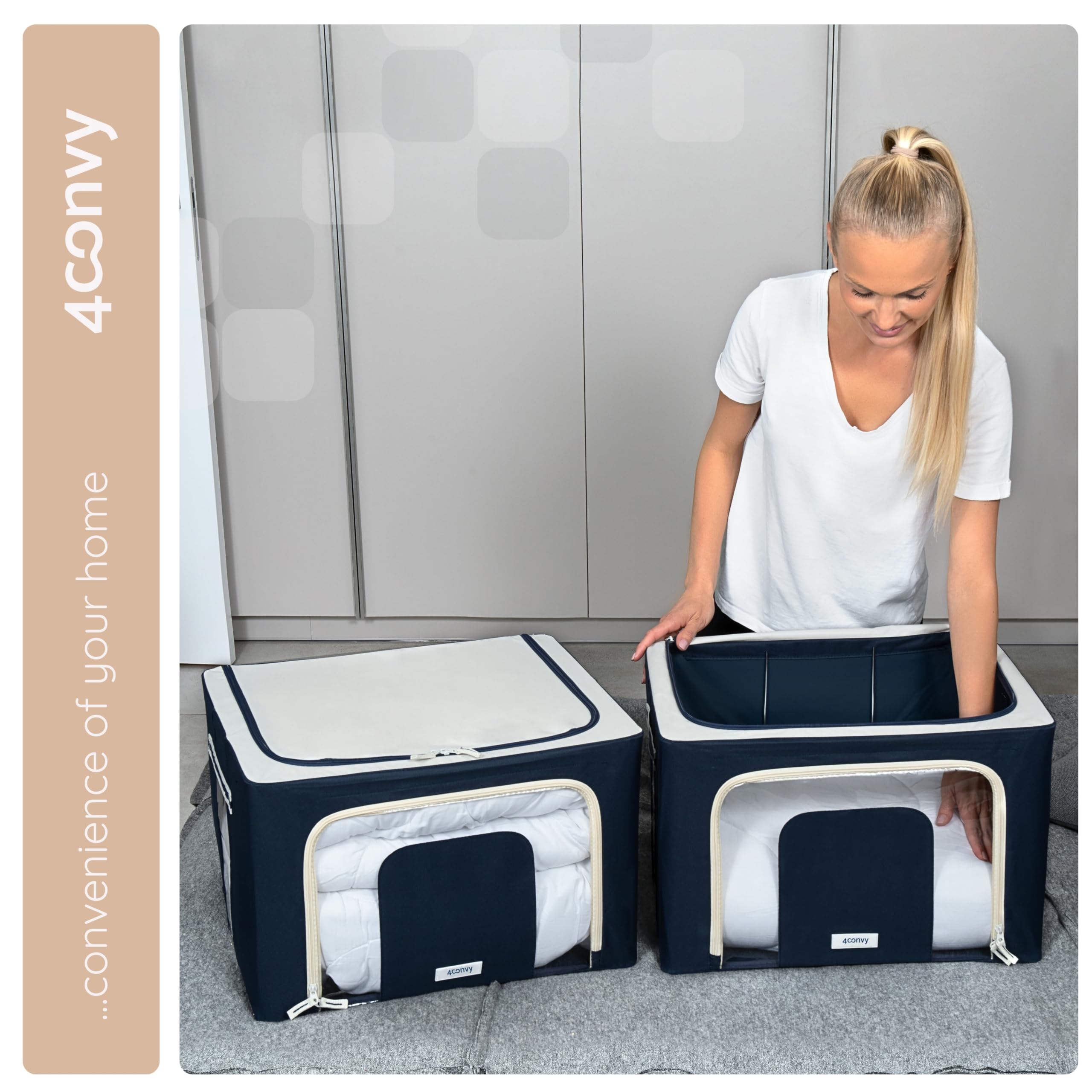 4CONVY Kleideraufbewahrung Kleiderschrank Box mit Reissverschluss Metallrahmen - grosse faltbare stapelbare Aufbewahrungsbox -2x66L Aufbewahrungstaschen - Kleiderbox für Bettdecke Kleidung Aufbewahrung