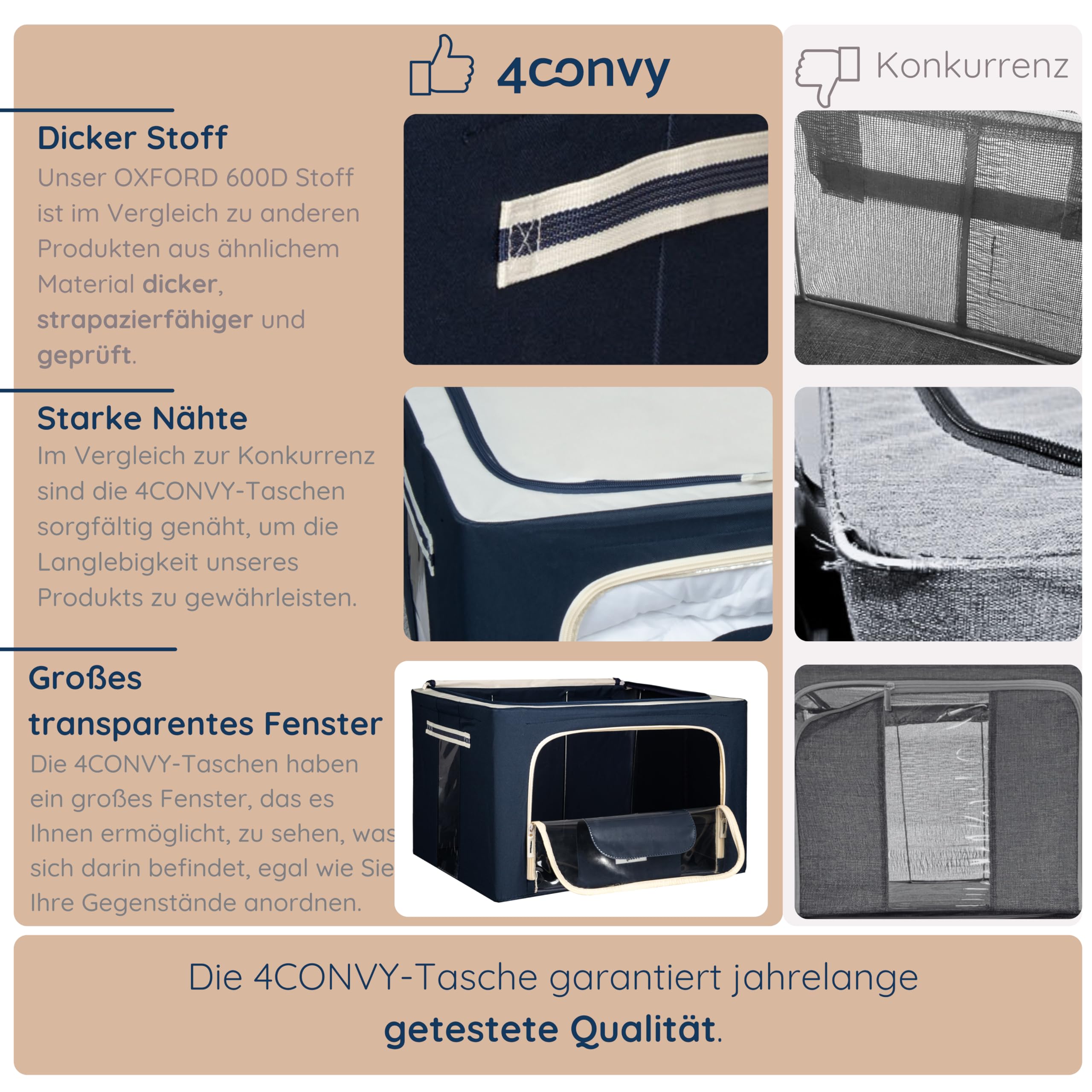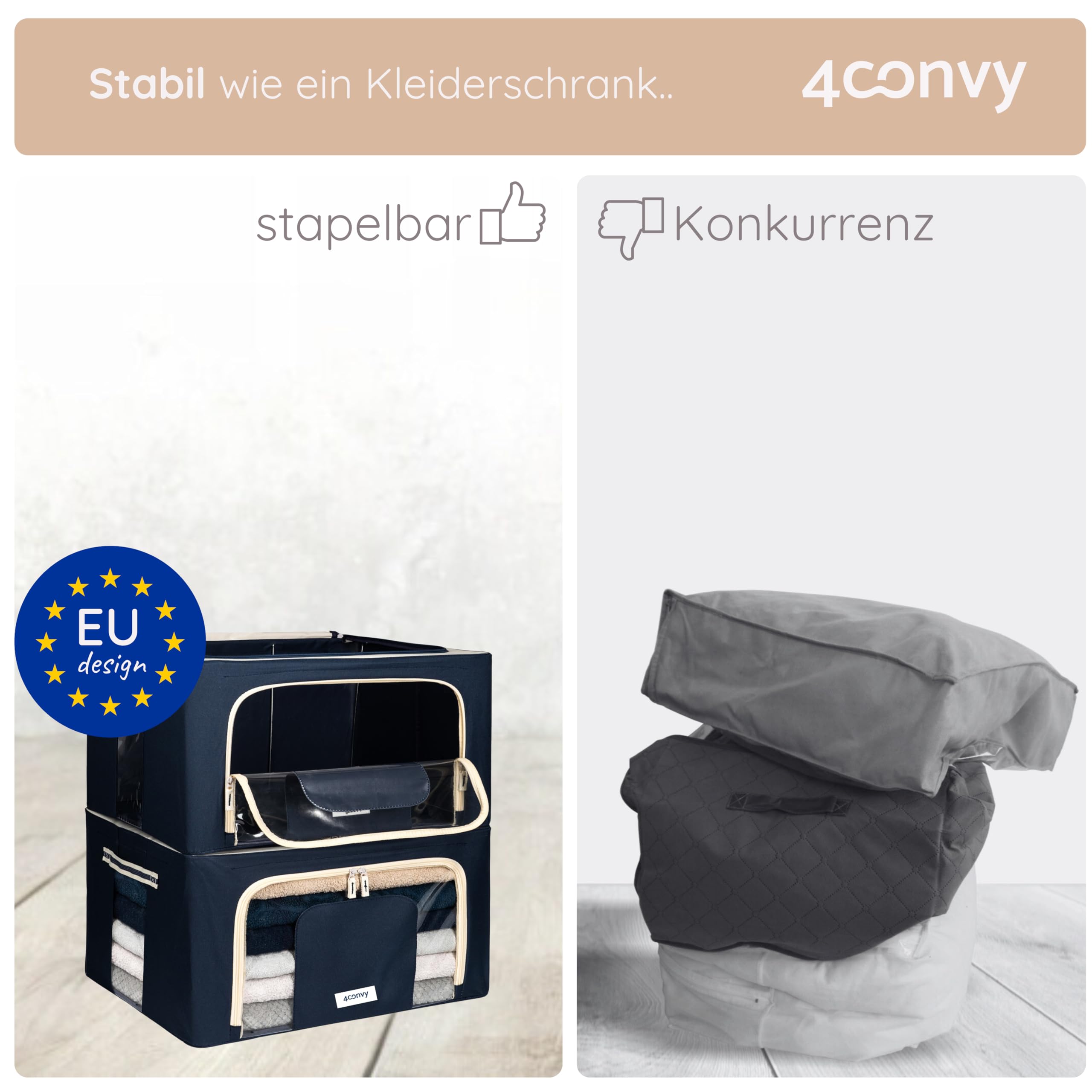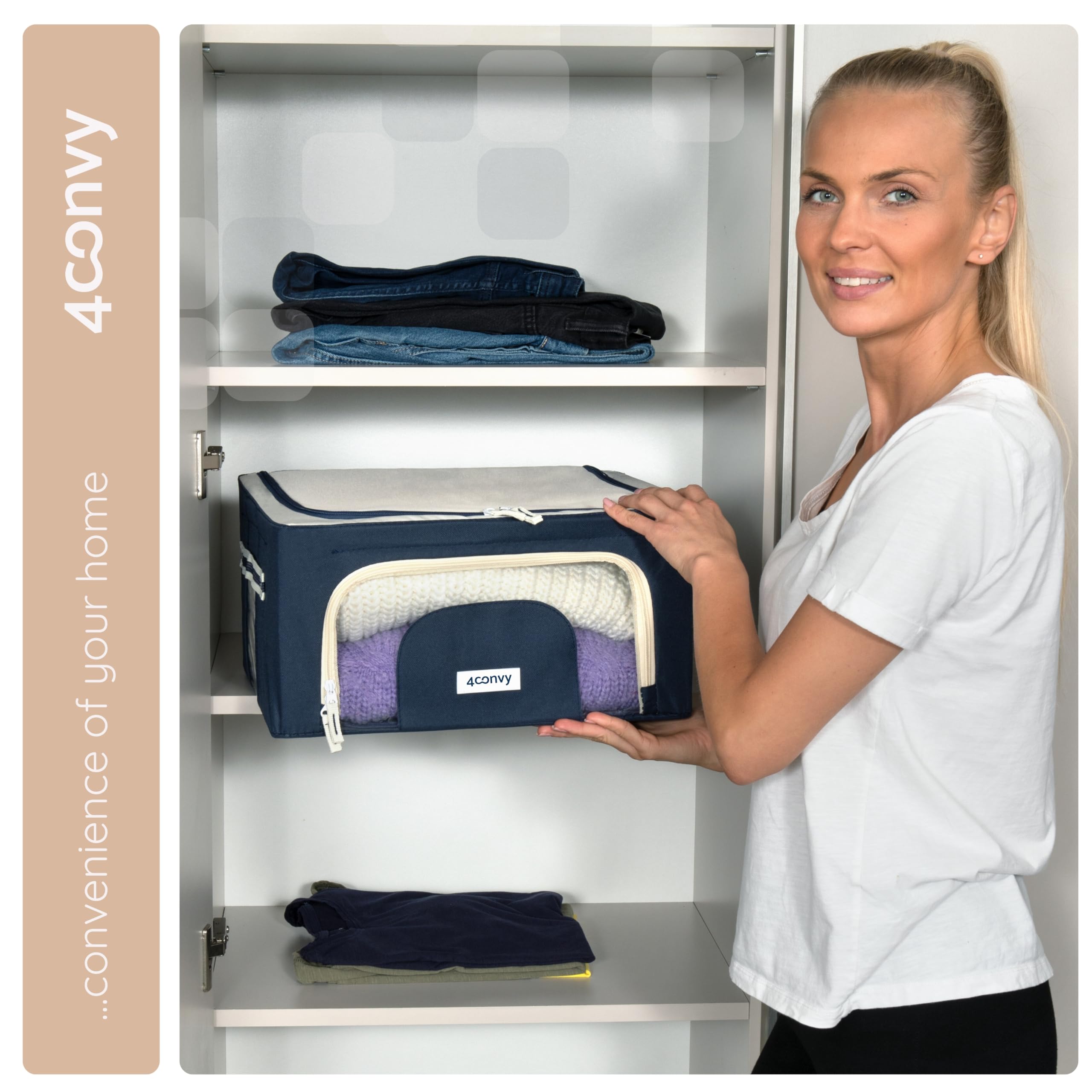 4CONVY Kleideraufbewahrung Kleiderschrank Box mit Reissverschluss Metallrahmen - grosse faltbare stapelbare Aufbewahrungsbox -2x24L Aufbewahrungstaschen - Kleiderbox für Bettdecke Kleidung Aufbewahrung
