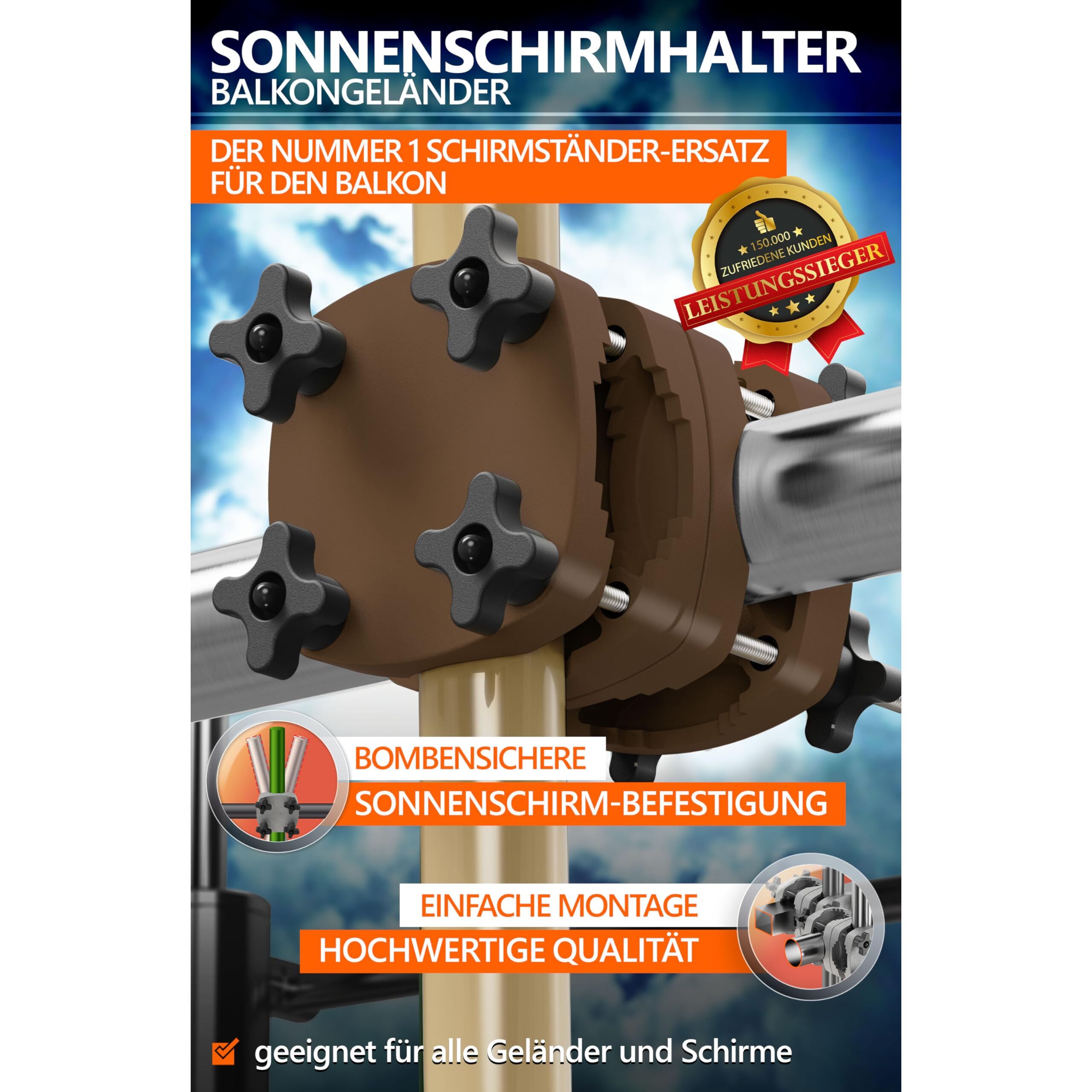 4smile Sonnenschirmhalter Balkongeländer SunnyGuy, Taupe - Bombensichere, universelle Sonnenschirm Halterung Balkon - Kompakte Schirmhalterung Balkongeländer ersetzt Sonnenschirmständer Balkon