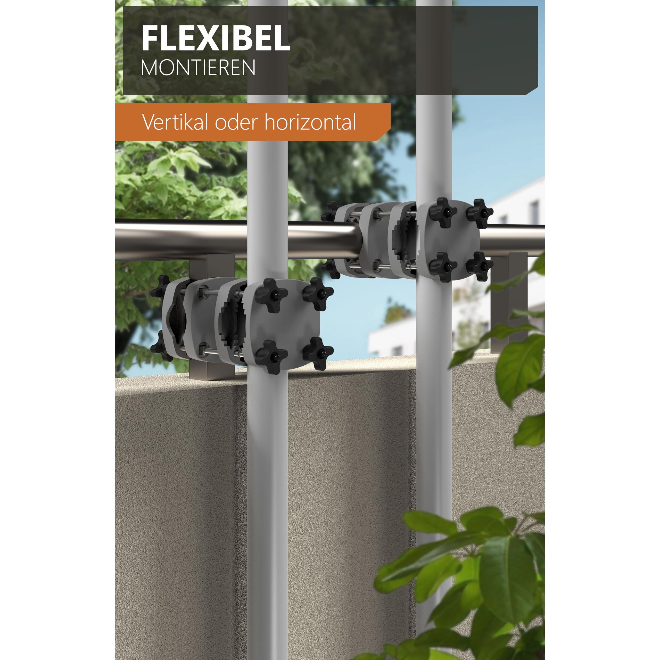 - [Kompaktes Multitalent] – Die Balkonklammer passt an runde oder eckige Geländer, Handläufe und Pfosten; hält auch grössere Sonnenschirme bombenfest; Stabilität gewährleistet