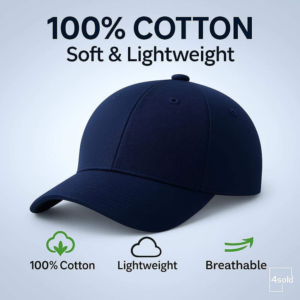 4sold Baseball Cap Baumwolle, Unisex Baseballkappe Herren Damen, Verstellbar Einheitsgrösse, Sonnenmütze, Leicht & Atmungsaktiv, Sport Freizeit Outdoor