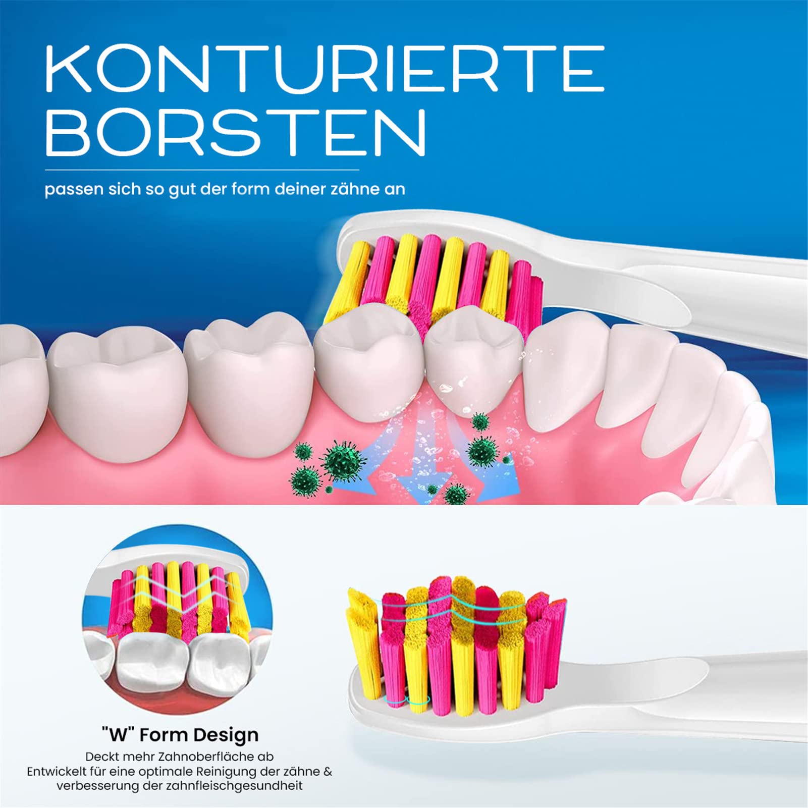 • Bürstenkopf in Form von "W", gewellte Borsten für eine gründliche Reinigung von Zahnfleisch und schwer erreichbaren Stellen