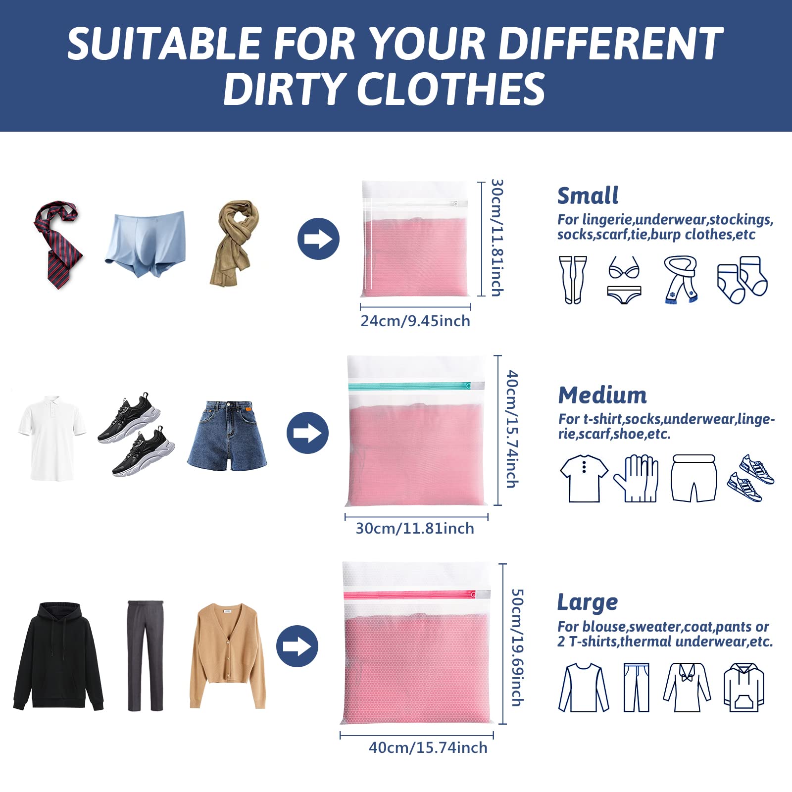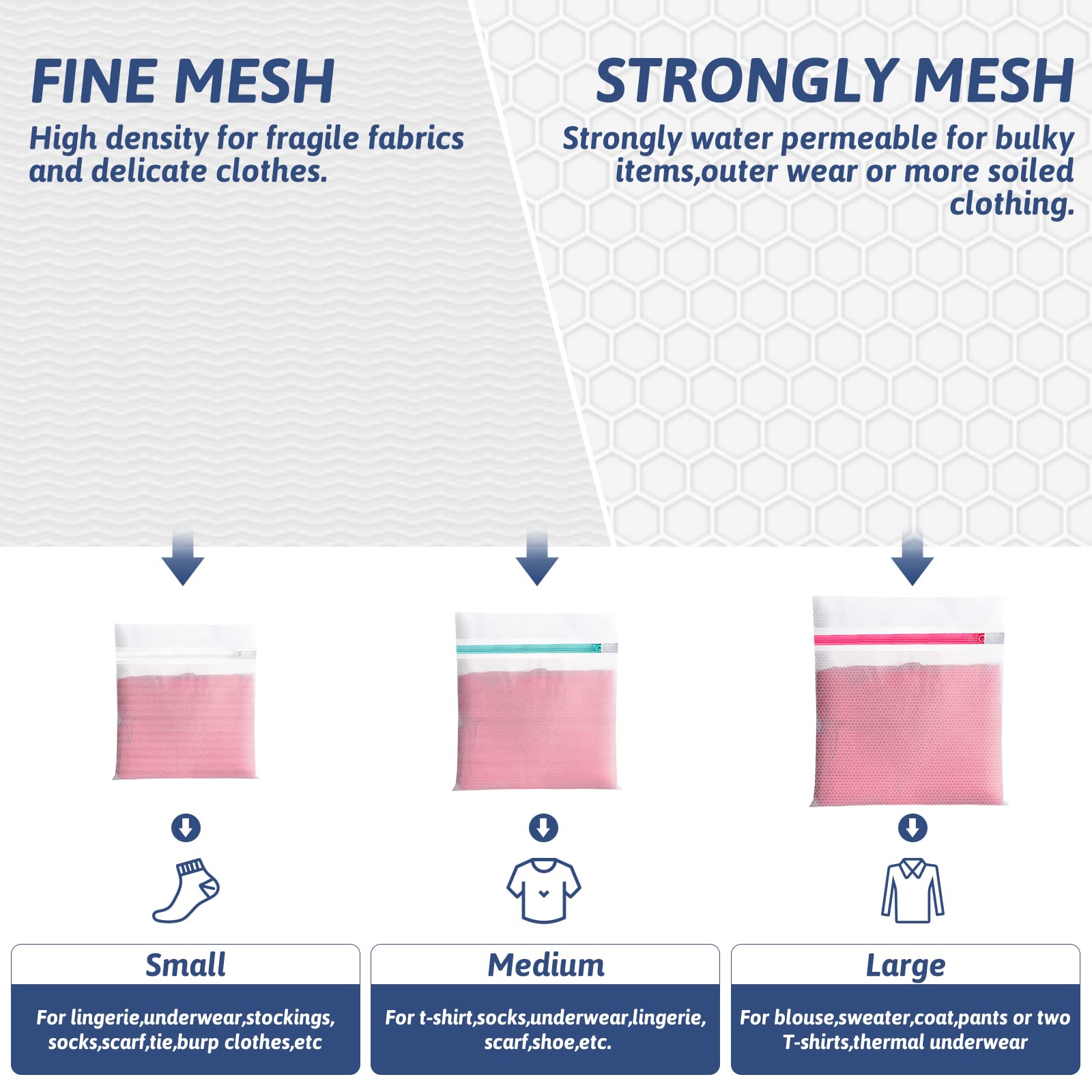 • Weit Verbreitete: Der Wäschebeutel für exquisite Kleidung ist mit einem hochwertigen Reissverschluss und langlebigen und starken Polyesterfasern ausgestattet, die Wiederverwendung unterstützen. Es ist nicht nur für Waschmaschinen geeignet, sondern kann auch als Lagerung während der Reise verwendet werden, um alles einfacher zu machen.