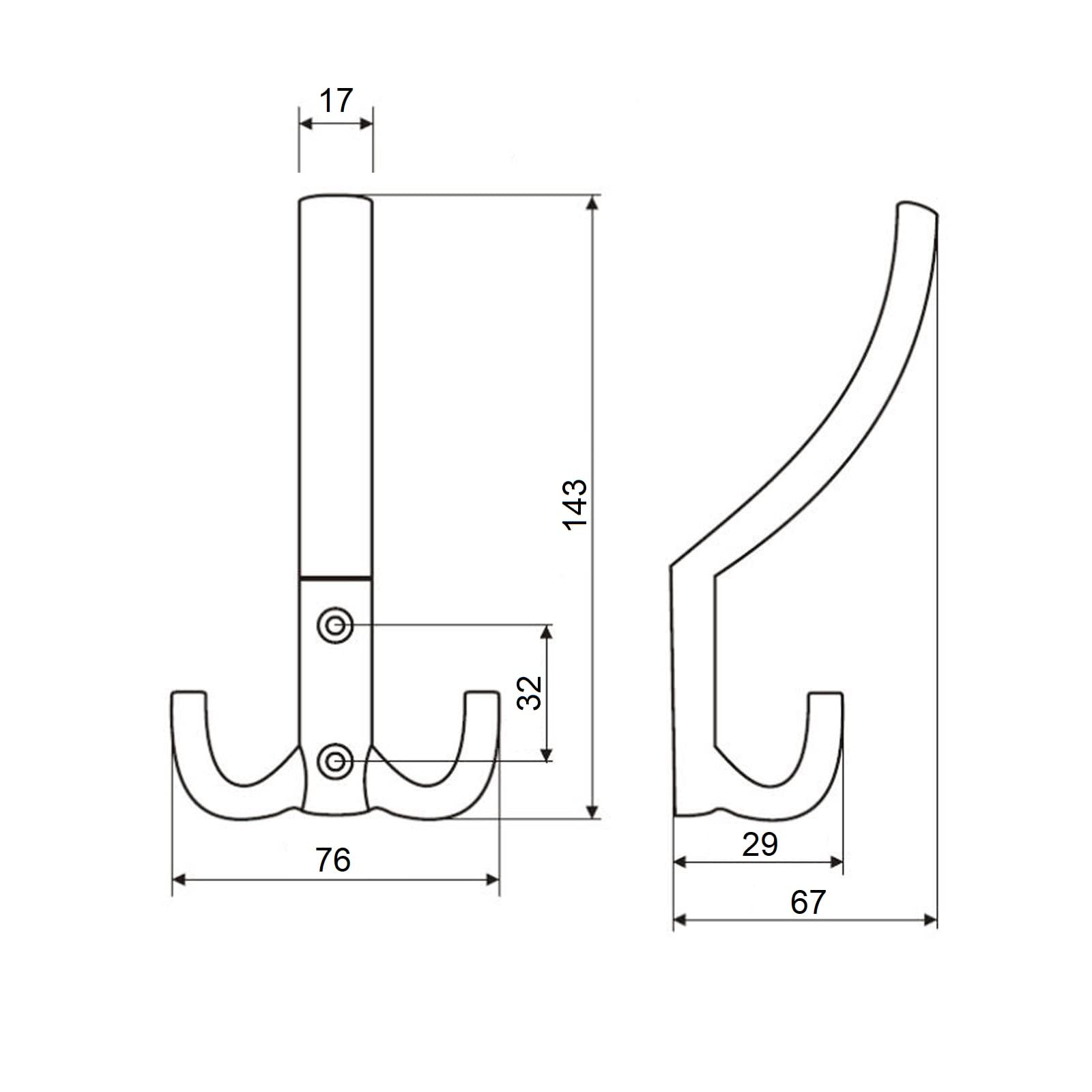 Formschöner und stabiler Garderobenhaken in einer langen Ausführung.