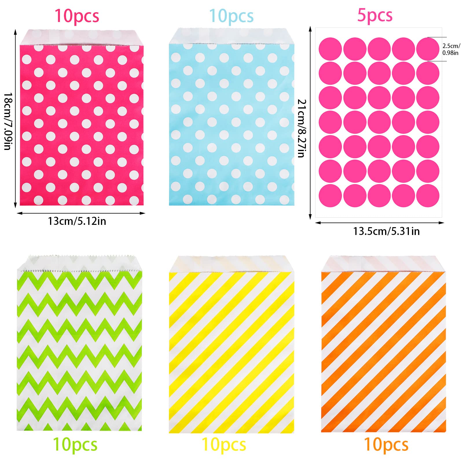 50 Stück Butterbrottüten, Candy bar Tüten Bunt Papiertüten Klein Geschenktüten Klein Mitgebsel Tüten Geschenktüten Kindergeburtstag Ostern Hochzeit Tüten zum Befüllen (175 Aufkleber)