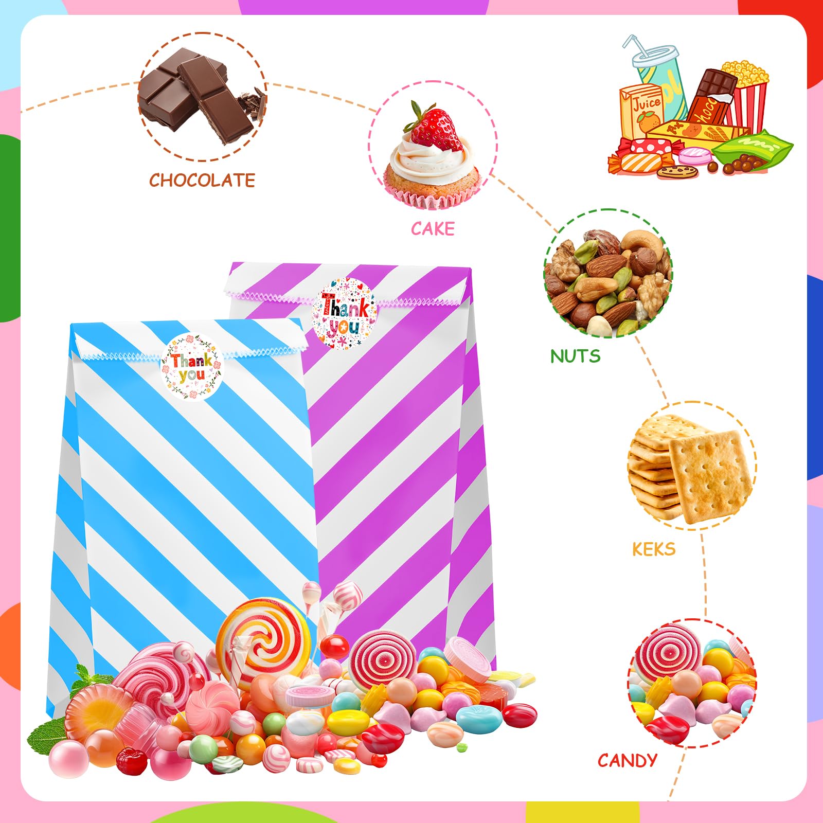 48 Stück Geschenktüten Kindergeburtstag,Tüten kindergeburtstag mit 63 Aufkleber,Papiertüten Kindergeburtstag,Geschenktüten Klein für Mitgebsel Kindergeburtstag,Hochzeit,Party