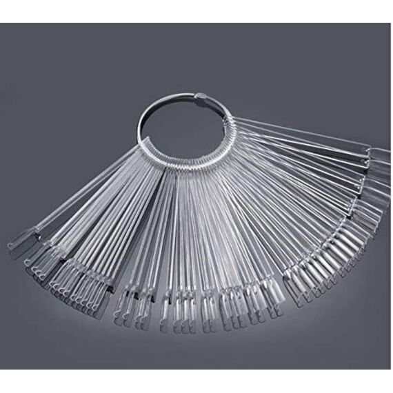 Dieses Set enthält 50 transparente Lüfter, die perfekt für Nageldesigns und Nail Art sind. Die Lüfter sind aus hochwertigem Kunststoff gefertigt und bieten eine einfache und bequeme Möglichkeit, Nagelspitzen zu präsentieren und zu gestalten. Sie sind ideal für professionelle Nageldesigner sowie für den Heimgebrauch und eignen sich hervorragend als Übungsmaterial für Nageldesign-Anfänger.