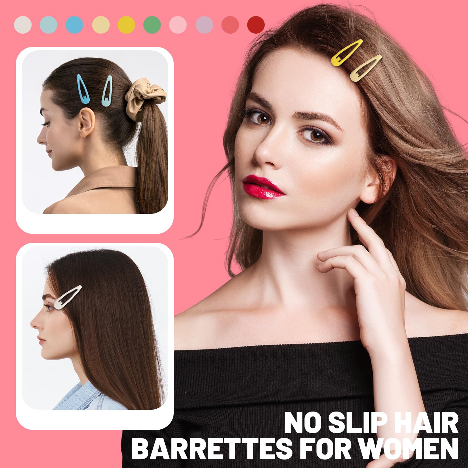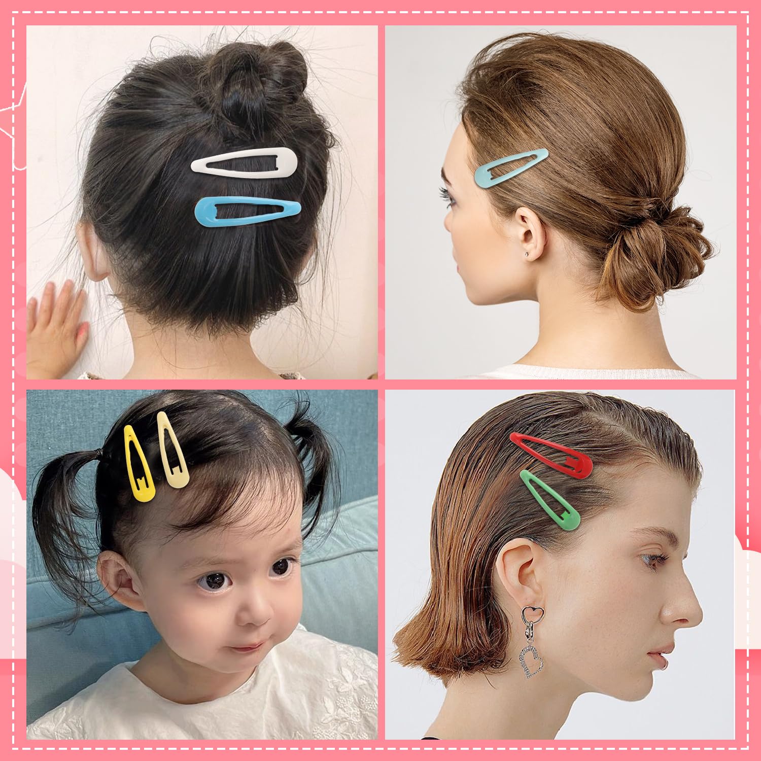 Die bunten Hair Clips halten feines bis normales Haar sicher an Ort und Stelle, ohne zu ziepen oder zu verrutschen. Ob Pony fixieren, Straehnen abteilen oder Akzente setzen – die Haarklammern sind vielseitig einsetzbar und angenehm zu tragen.