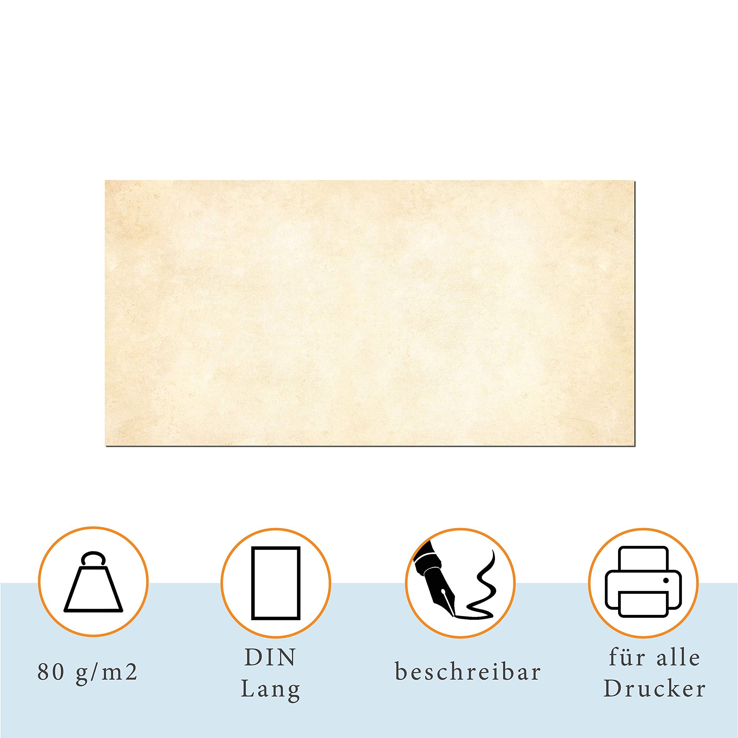 50 x PRESENTOU Briefpapier beidseitig bedruckt 120 Gramm Papier | Motivpapier Urkundenpapier Urkunde Speisekarte Liebesbrief (Vintage Hell, 50 Umschläge)