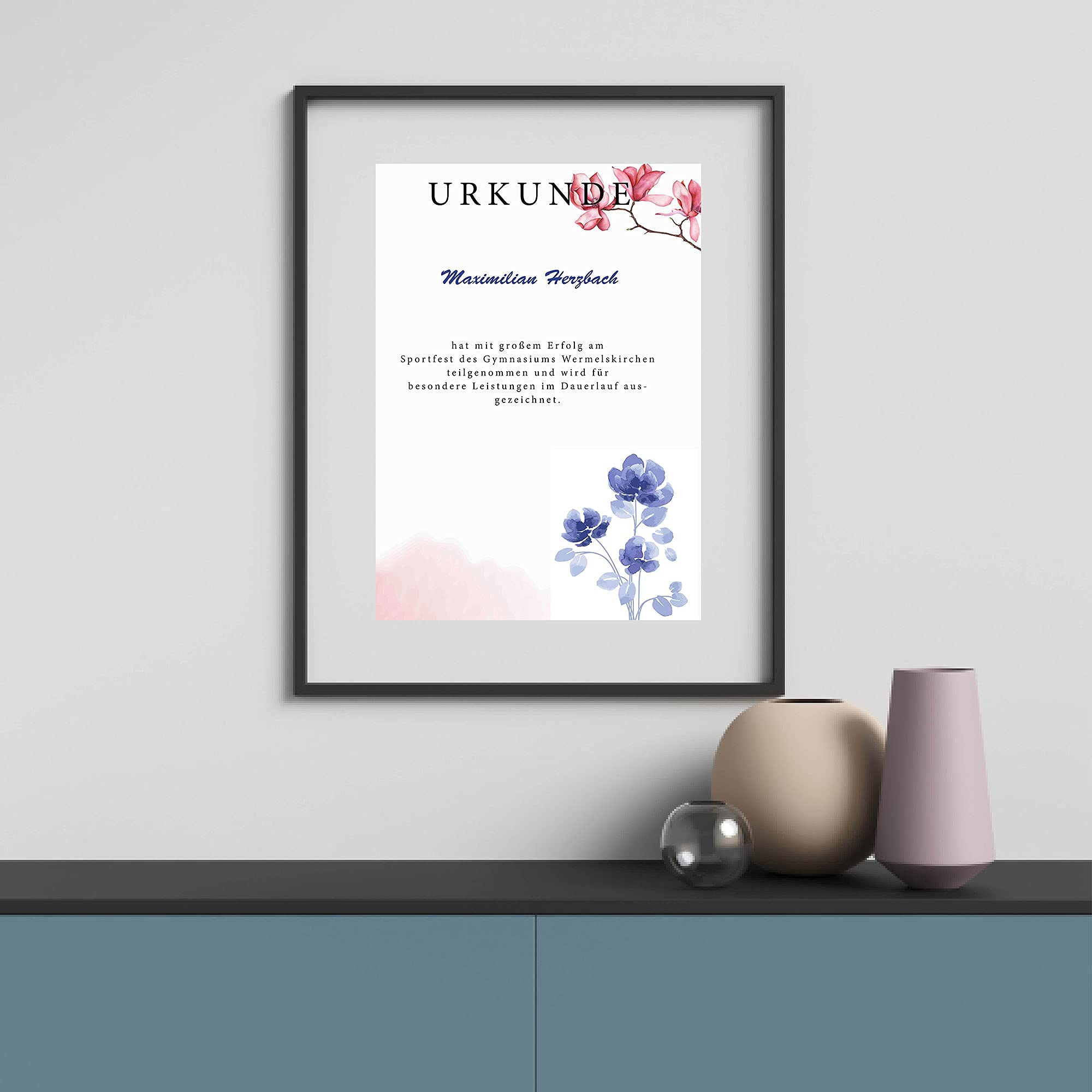 50 x PRESENTOU Briefpapier beidseitig bedruckt 120 Gramm Papier | Motivpapier Urkundenpapier Urkunde Speisekarte Liebesbrief (Aquarell Blumen Rosa, 50 Bögen)