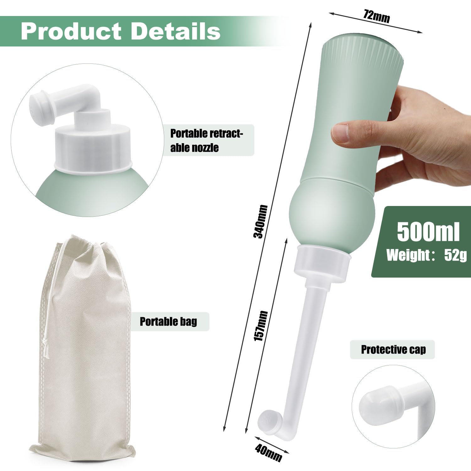 500 ml Po Dusche mit Reiseetui, Portable Bidet Intimdusche fuer Reisen und Zuhause, Einziehbar, Gruen