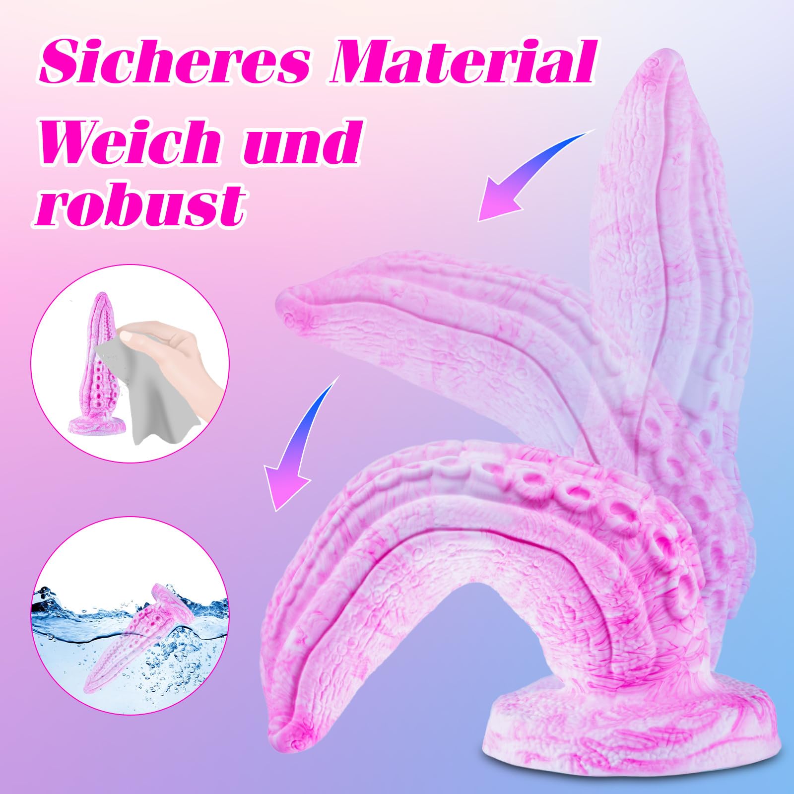 • HERRLICHE FARBEN – EINZIGARTIGE HANDARBEIT: Jeder Octopus-Analdildo ist handgefertigt in atemberaubenden Rosa- und Weisstönen, was den Dildo äusserst attraktiv macht. Die Farben werden nicht nur aufgemalt; sie sind Teil des farbigen Silikons und sorgen dafür, dass sie auch in heissen Bädern nicht ausbleichen.