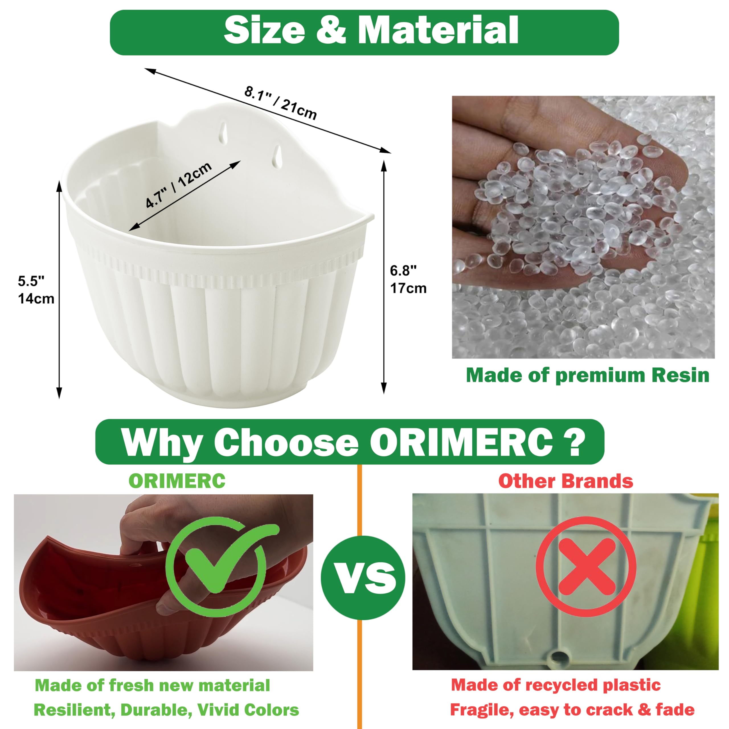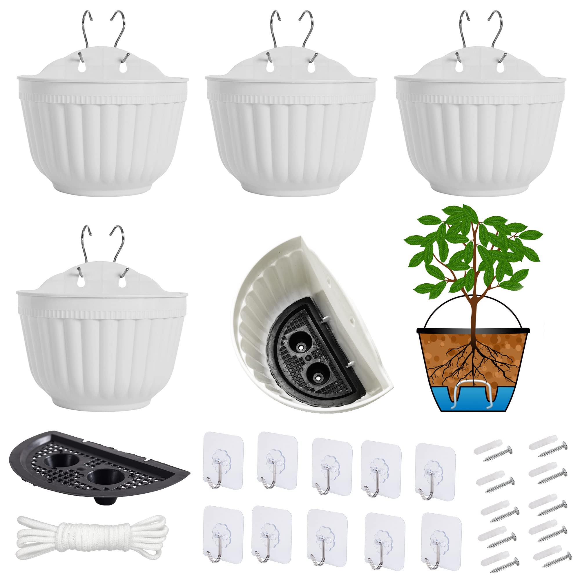 5er Pflanzgefäss aus Kunstharz zum Aufhängen an der Wand vertikaler Garten Wohnzimmer Wandmontage Fensteraufhängung Küche Kräuter Balkon Geländer Regal Zaun Gitter für Innen- und Aussenbereich weiss