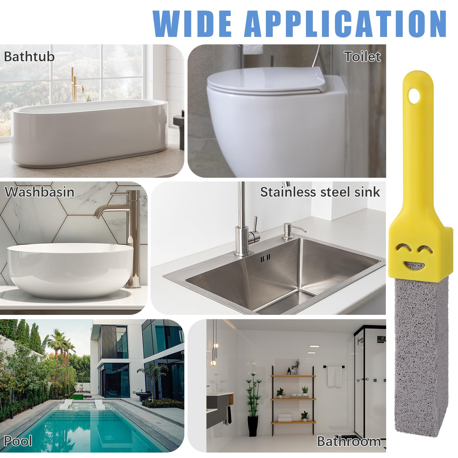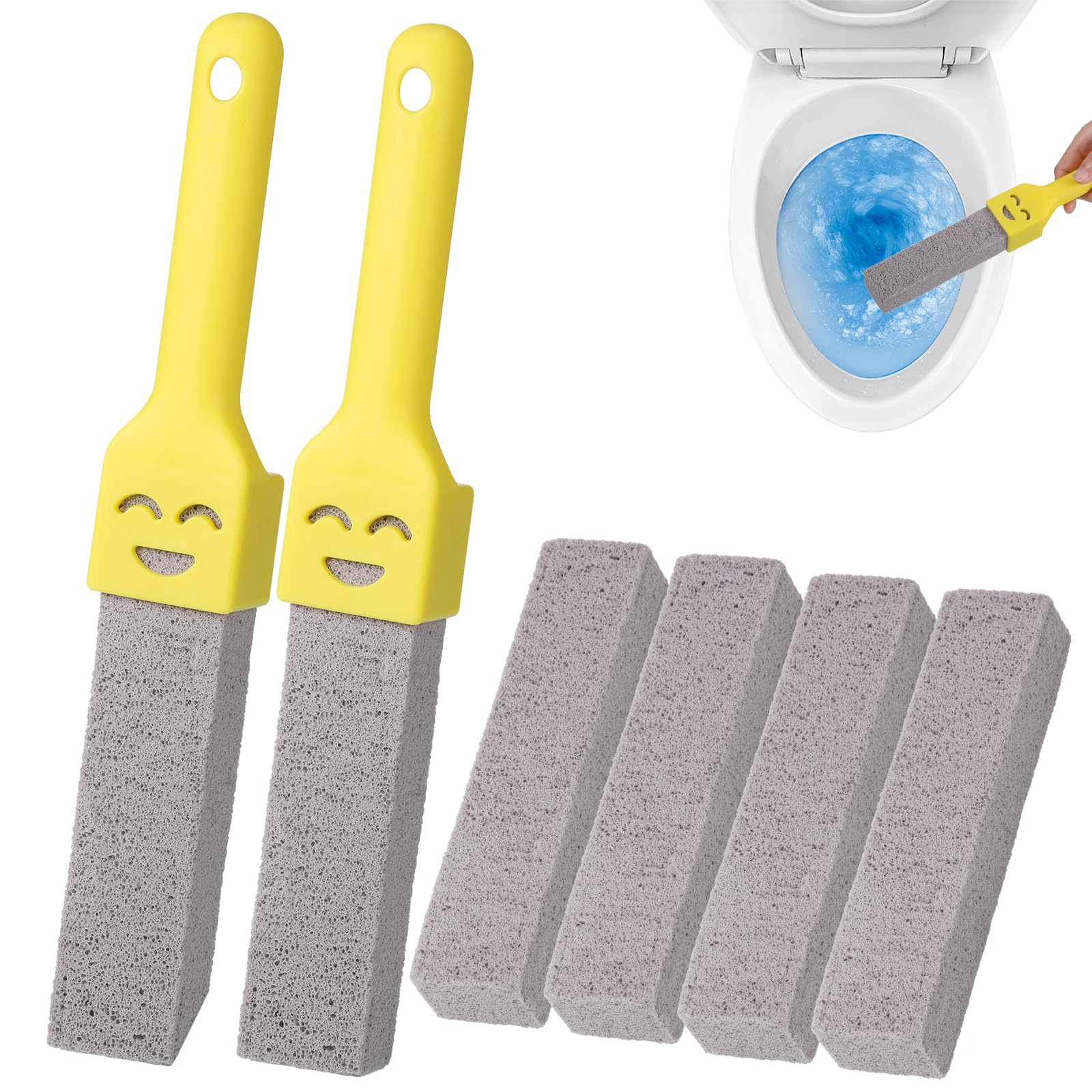 6 geruchlose Pomez-Steine, Fussstein für Toilette mit 2 Griffen, austauschbarer Bimsstein für Toilette, Pomez-Stein für die natürliche Toilettenreinigung für die Reinigung von Bädern, Pool
