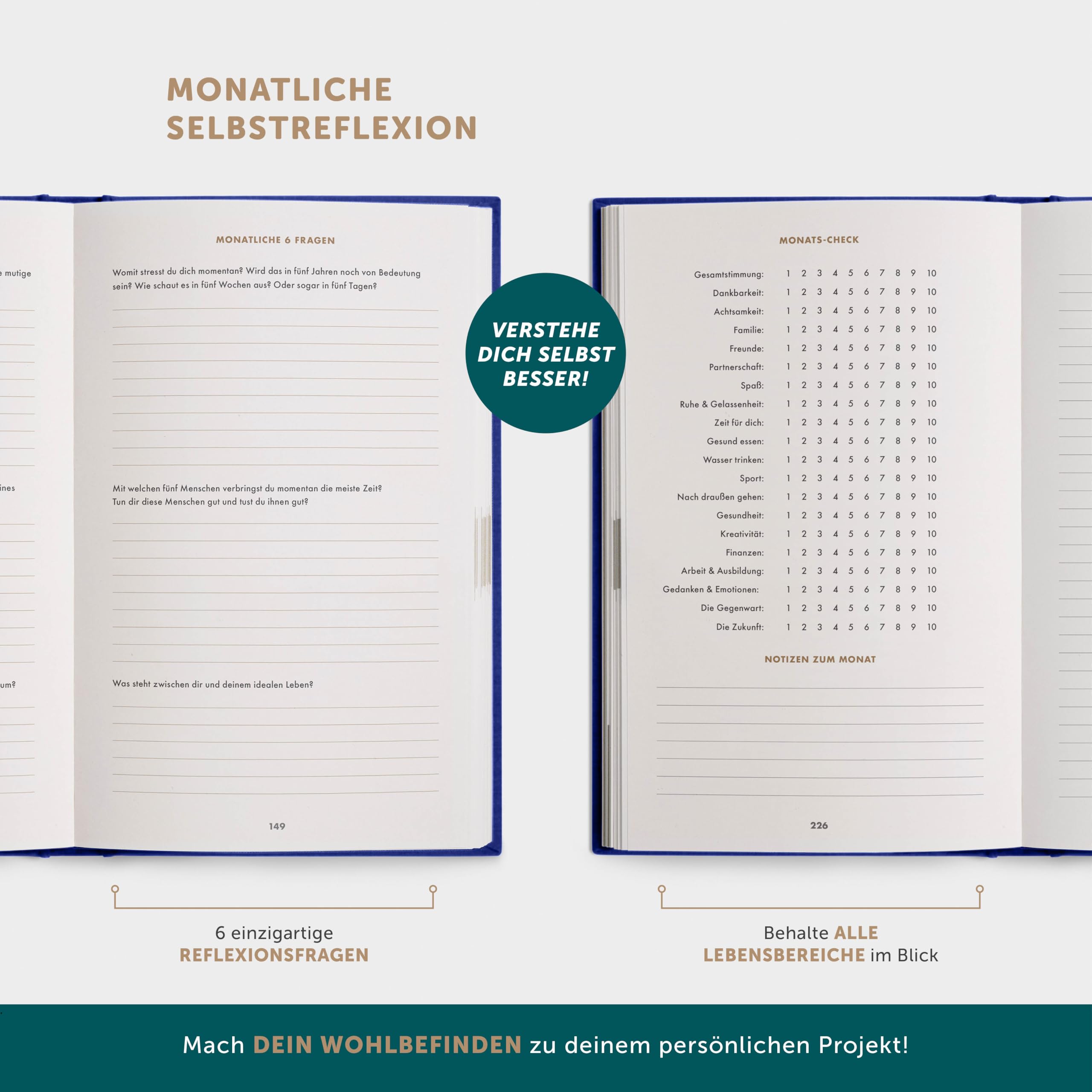 • ✅ Mehr LEBENSFREUDE, ACHTSAMKEIT und SELBSTBEWUSSTSEIN – Glücklichsein ist Übungssache. Mit diesem Journal Buch findest du heraus, was dich glücklich macht – und holst durch tägliches Journaling mehr davon in dein Leben. Mach dein Wohlbefinden zur Priorität. Mit dem beliebtesten Dankbarkeitstagebuch der Welt!