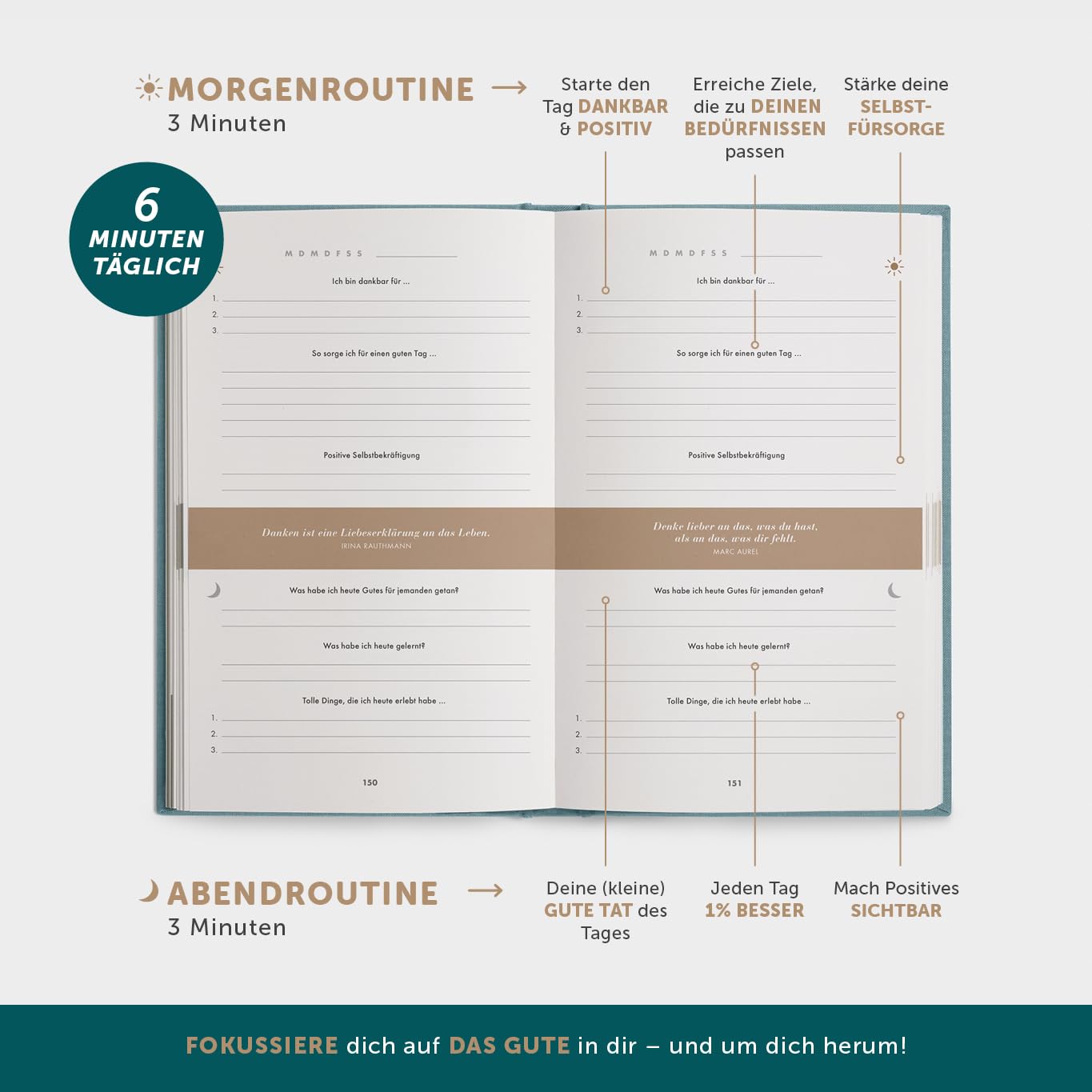 6-Minuten® Tagebuch für Erwachsene 2026 (Das Original) – Mehr Achtsamkeit, Resilienz & Selbstliebe – Dankbarkeitstagebuch, Journal Buch – Achtsamkeitstagebuch in 22 Sprachen übersetzt
